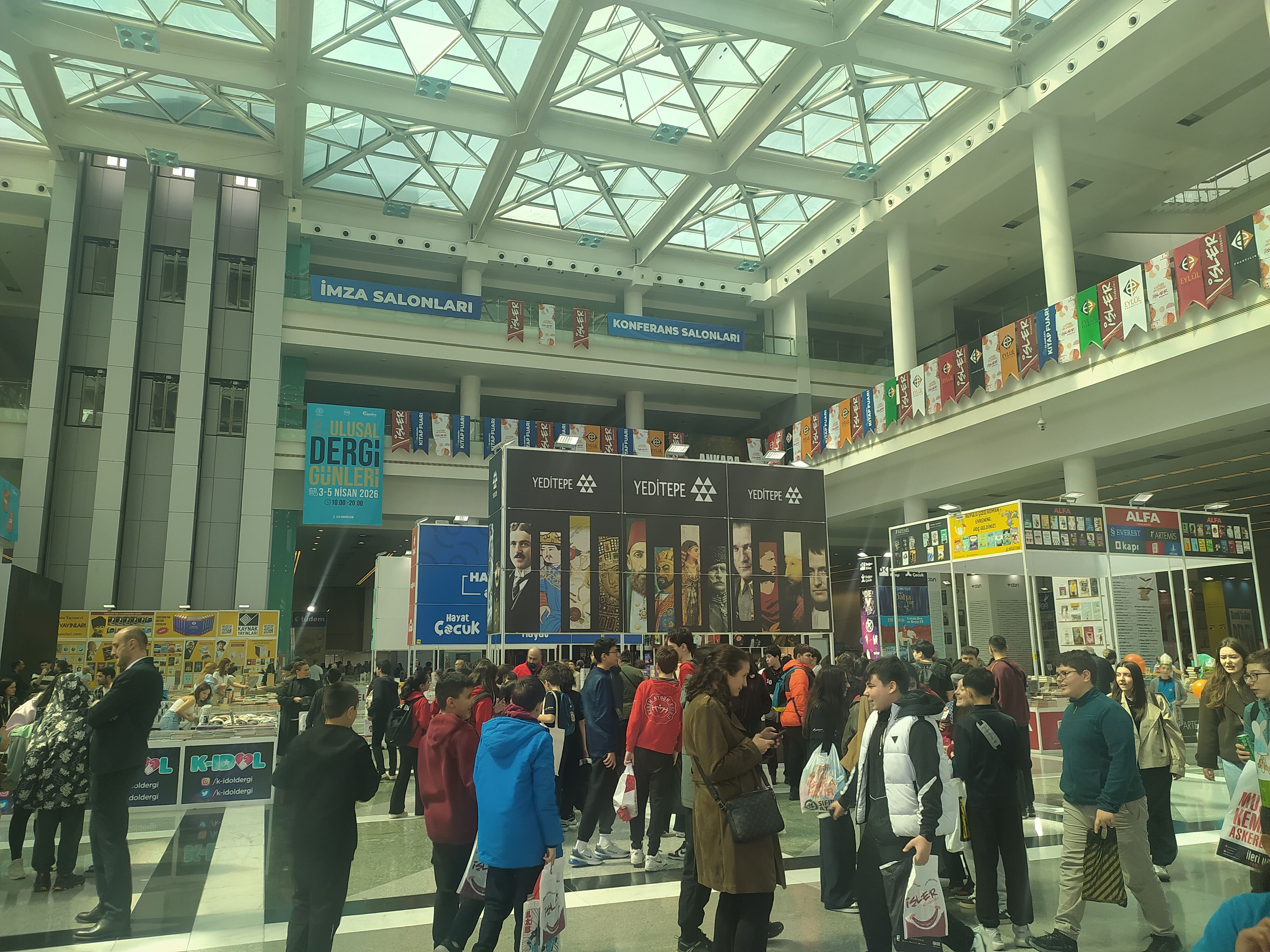 Fuar alanında yayınevlerinin branşlara göre ayrılması, kitapseverlerin aradıkları eserlere ulaşmasını kolaylaştırdı. Çocuk yayınlarından akademik eserlere, spordan makale içerikli yayınlara kadar her türün farklı bölümlerde yer alması, yoğun kalabalığa rağmen akıcı bir ziyaret imkânı sundu. ATO Congresium’un ferah yapısı ise stantlar arası dolaşımın rahatça yapılmasını sağlayarak ziyaretçilere keyifli bir fuar deneyimi yaşattı.