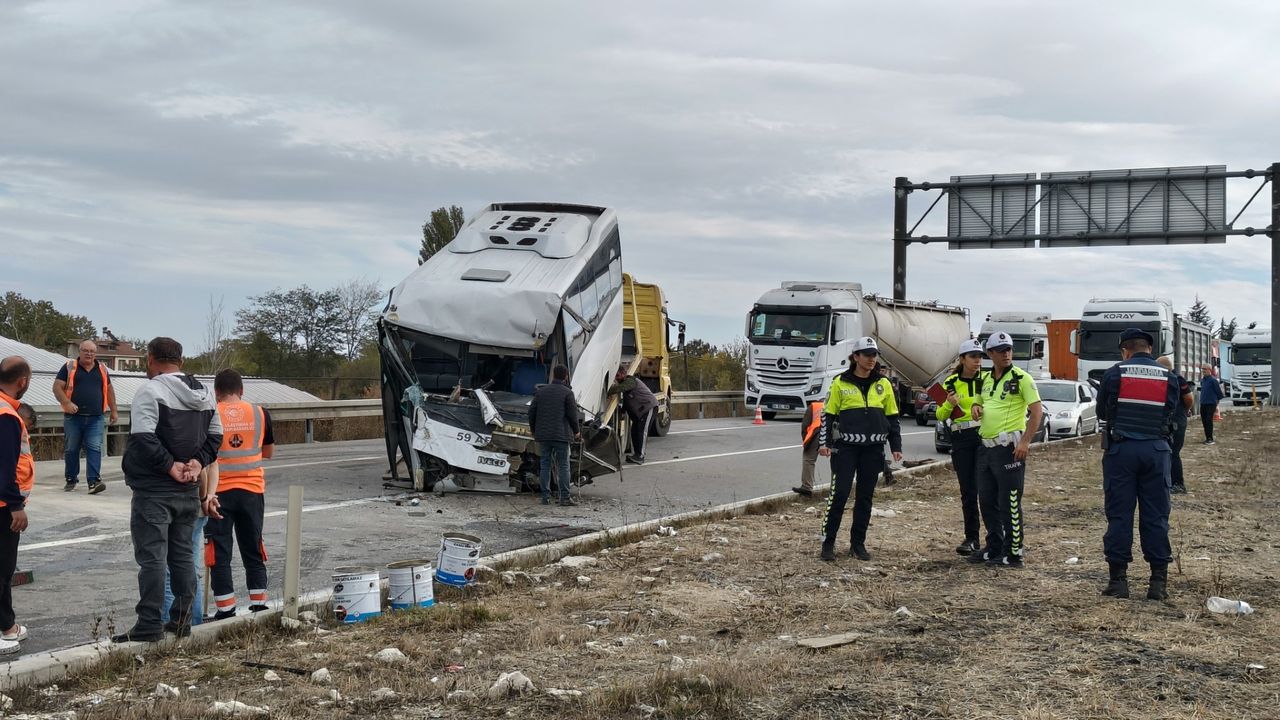 Kaza, akşam saatlerinde Saray ilçesi Bağlar mevkisinde meydana geldi. Bağlar mevkisine seyir halinde olan Mehmet N. yönetimindeki 59 ANT 682 plakalı otomobil ile Haydar K. idaresindeki 59 AEN 212 plakalı işçi servisi sürücüleri arasında iddiaya göre yol verme tartışması çıktı. Tartışma sorasında sürücüler araçlarıyla seyir halindeyken birbirlerini sıkıştırdı. Bu sırada savrulan işçi servisi karşı yöne geçerek Fethi İ. yönetimindeki 06 EZS 136 plakalı TIR ile çarpıştı. Kazada 3 aracın sürücüsü de yaralandı.