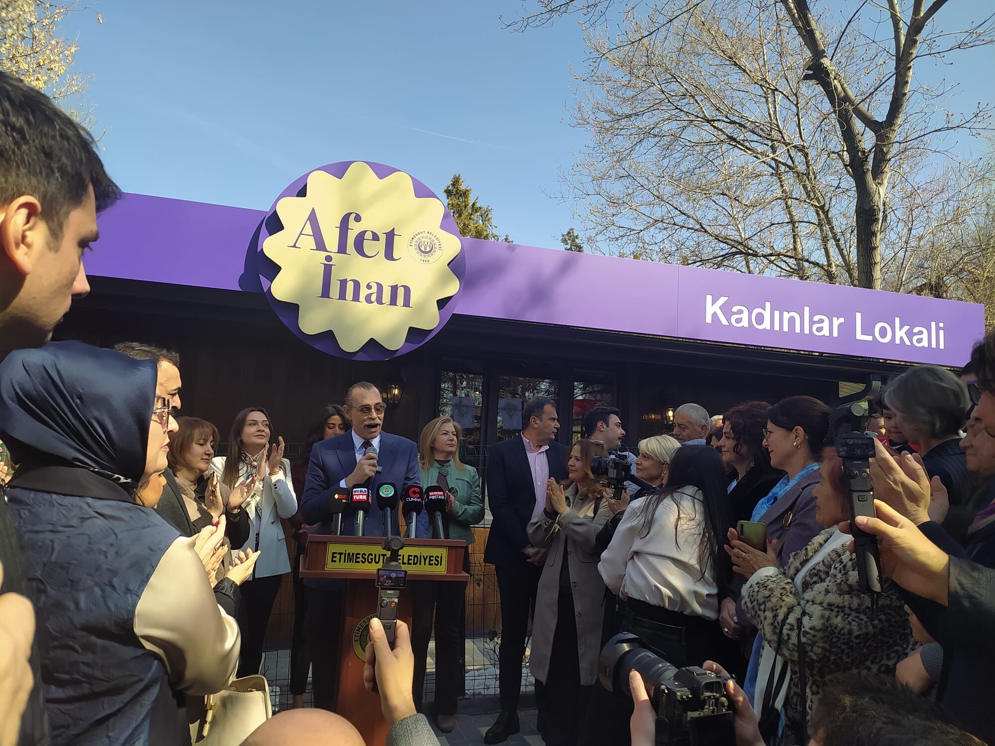 Etimesgut Belediyesi, 8 Mart Dünya Emekçi Kadınlar Günü kapsamında Afet İnan Kadınlar Lokali’nin açılışını gerçekleştirdi. Cumhuriyet’in öncü kadınlarından Afet İnan’ın adını taşıyan mekanın açılışına Etimesgut Belediye Başkanı Erdal Beşikçioğlu’nun yanı sıra Ankara Büyükşehir Belediye Başkanı Mansur Yavaş’ın eşi Nursel Yavaş, milletvekilleri, protokol üyeleri ve çok sayıda vatandaş katıldı. Programda konuşan Beşikçioğlu, kadınların toplumdaki yerinin güçlenmesi gerektiğine dikkat çekerek kadın cinayetlerine tepki gösterdi ve eşitlik, özgürlük ve dayanışma vurgusu yaptı.