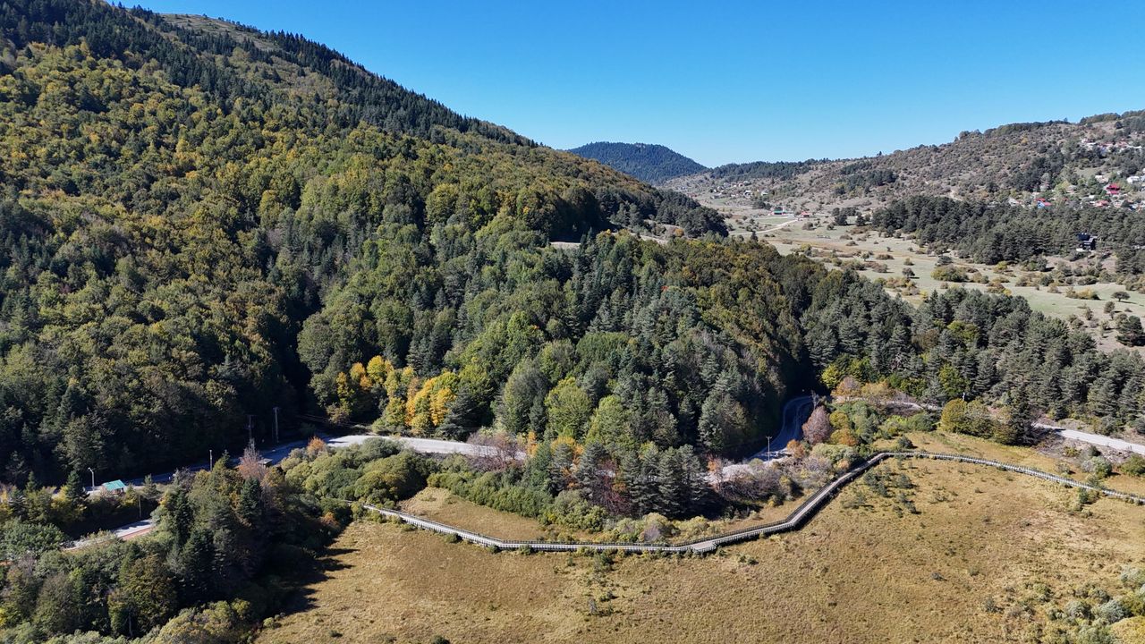Yılın her mevsimi yerli ve yabancı tatilcilerin uğrak noktalarından olan Abant Gölü Milli Parkı'nda ormanlarda sonbaharın izleri görülmeye başlandı. Yeşilin her tonunu barındıran ormanlarla çevrili milli parkta, sararmaya başlayan ağaçlar renk cümbüşü oluşturdu. Milli parktaki eşsiz manzara dronla görüntülendi. Göl çevresindeki çayırlarda mavi çiçekleri ile açan yöreye özgü Abant çiğdem çiçekleri de milli parka renk kattı.