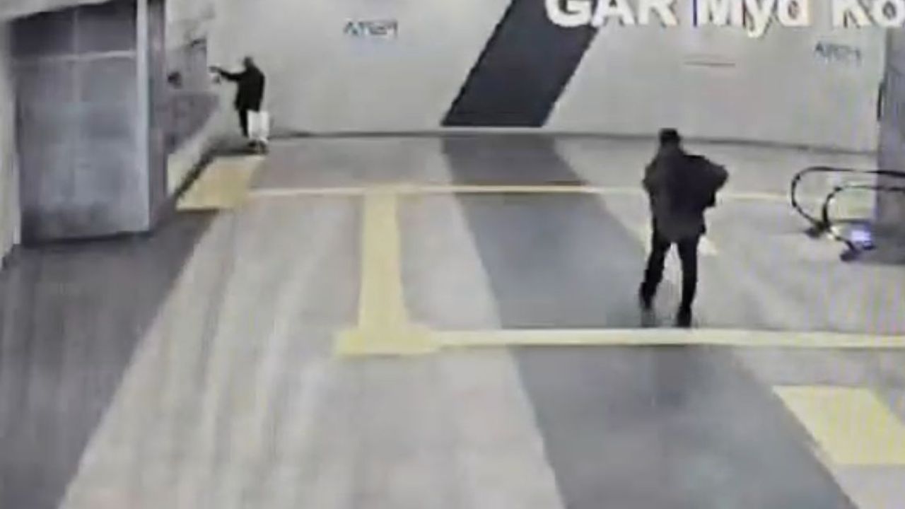 Henüz kimliği tespit edilemeyen bir kişinin yangın alarmına bastığı anlar, güvenlik kamerasına da yansıdı.