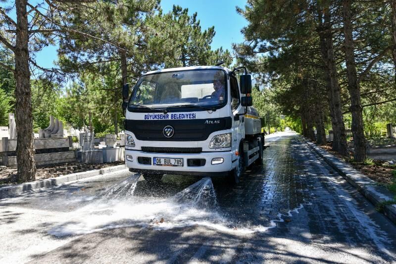 Mezarlıklar Daire Başkanlığı ekipleri, bayram ziyaretlerinin sorunsuz yapılabilmesi için Karşıyaka, Ortaköy, Çimşit, Gölbaşı, Pursaklar, Cebeci mezarlıkları başta olmak üzere 25 ilçede 1405 mezarlıkta 63 araç ve 228 personel ile bakım ve temizlik hizmetleri tamamlandı. Yürüyüş yollarının düzenlenmesi, kırılan alanların onarılması ve çevre temizliği gibi çalışmalarla mezarlıklar bayram ziyaretleri için hazır hâle getirildi.