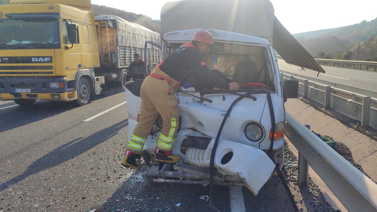 Kaza saat 15.30 sıralarında Gelenbe mevkisinde meydana geldi. İ.N. idaresindeki 16 SB 295 plakalı zeytin yüklü kamyonet, kontrolü kaybetmesi sonucu aynı istikamette giden sürücüsünün kimliği henüz belirlenemeyen 68 ADS 763 plakalı TIR’a arkadan çarptı. Diğer sürücülerin ihbarı üzerine bölgeye jandarma, sağlık ve itfaiye ekipleri sevk edildi. Kamyonette sıkışan İ.N., itfaiye ekiplerinin müdahalesiyle çıkarılarak, sağlık görevlilerine teslim edildi. Ağır yaralandığı belirlenen İ.N, ambulansla Akhisar Mustafa Kirazoğlu Hastanesi’ne kaldırıldı. Kazayla ilgili soruşturma başlatıldı.
