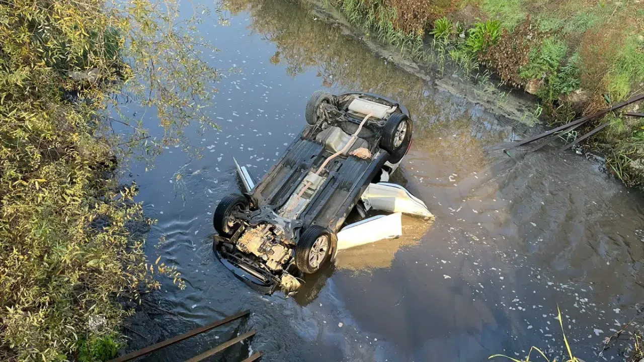 Öte yandan, kaza anı çevredeki güvenlik kamerasınca kaydedildi. Görüntülerde, yolda ilerleyen aracın kontrolden çıkarak dereye devrildiği ve çevredekilerin yardıma koştuğu görülüyor.