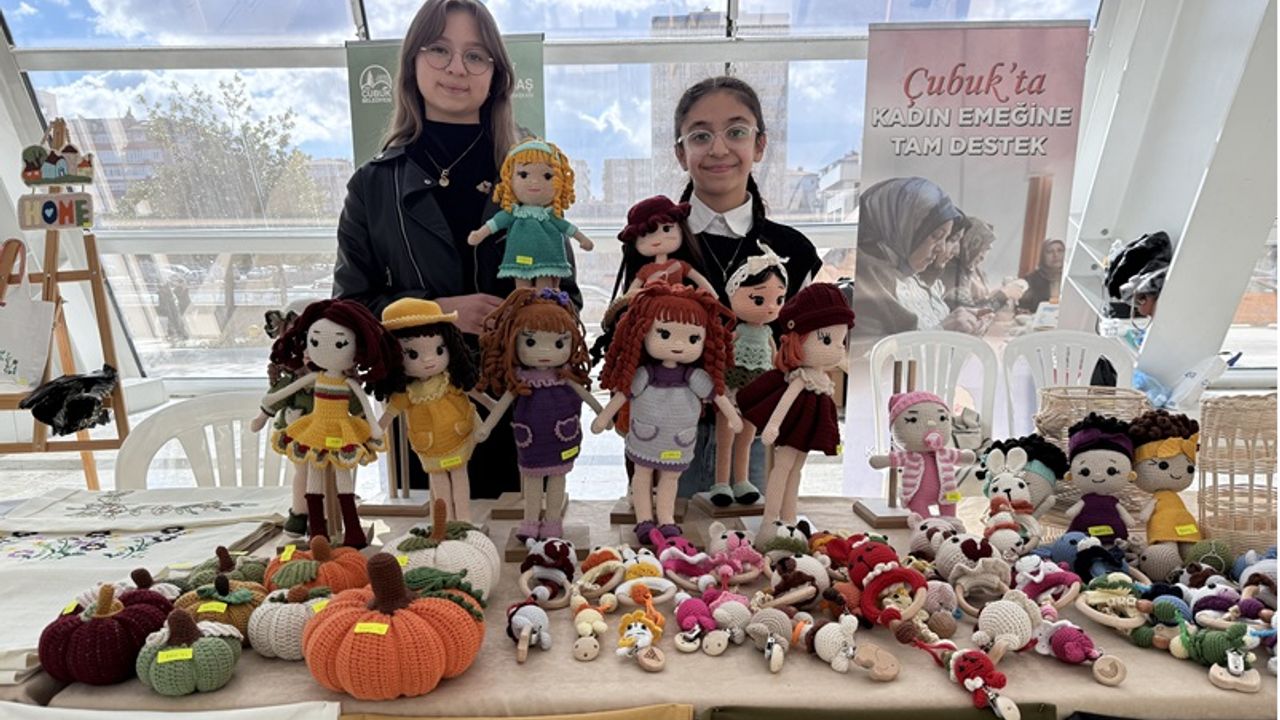 Sergide, Çubuk Belediyesi bünyesinde faaliyet gösteren Kadın El İşleri Atölyesi ile Engelsiz Yaşam Merkezinin Çubuk Halk Eğitimi Merkezi işbirliğiyle açtığı kurslarda kursiyerler tarafından hazırlanan ürünler yer aldı.