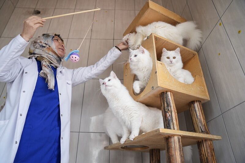 Nesli tükenme tehlikesi altında olan, tüylerinin uzunluğu ve parlaklığıyla dikkati çeken Ankara kedisi, burada koruma altında tutuluyor ve eşleştirmeler sonrasında sahiplendiriliyor.