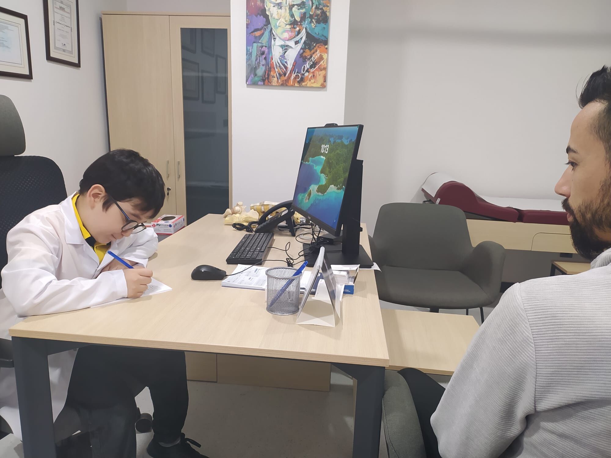 Her 23 Nisan’da görmeye alışık olduğumuz bürokrasi koltuğu devrinden farklı olarak, İlkokul çocukları Hastanenin yönetim ve muayene koltuklarına oturdu. Hastanenin neredeyse tüm branşlarını gezen öğrenciler, erken yaşta uzmanlık alanlarını tanıma fırsatı buldu. Bu deneyim sayesinde birçok çocuk, ilgi duyduğu bölümü şimdiden hedefleyerek gelecekteki Meslek Seçimleri için ilk adımı attı. "Hastane nasıl yönetilir?" sorusuna yanıt arayan çocuklar, Alçı Odasında bir kolun nasıl alçıya alındığını merakla takip ederken; Okul Müdürü Metin Bardakçı’dan uygulamalı olarak "Temsili Kan Alma" provası yaparak heyecan dolu anlar yaşadı.