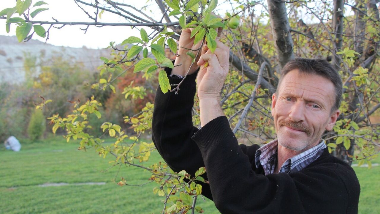 Erdoğan, yaptığı açıklamada, hayatında ilk kez meyve ağaçlarının sonbaharda çiçek açtığını belirterek, yazın bu ağaçlardan iki kasa meyve topladıklarını söyledi.