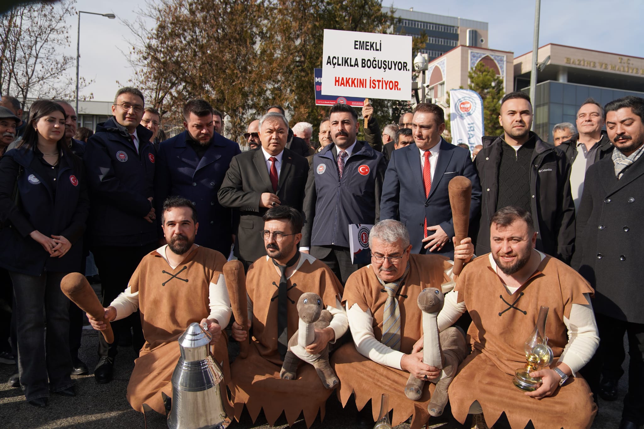 Memurların geçim sıkıntısını "Taş Devri" kostümleriyle anlatan konfederasyon, "Modern çağın dışına itiliyoruz" mesajı verdi.