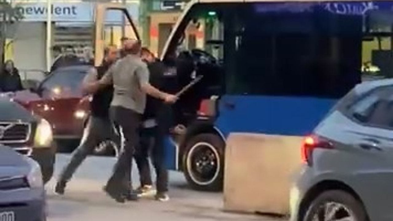 Trafikte hafif ticari aracın sürücüsü ile minibüs şoförü arasında çıkan kavga çevredeki kişiler tarafından cep telefonuyla kaydedildi. Görüntülerde, hafif ticari aracından inen sürücünün elinde sopayla minibüs şoförüne saldırdığı anlar yer aldı.