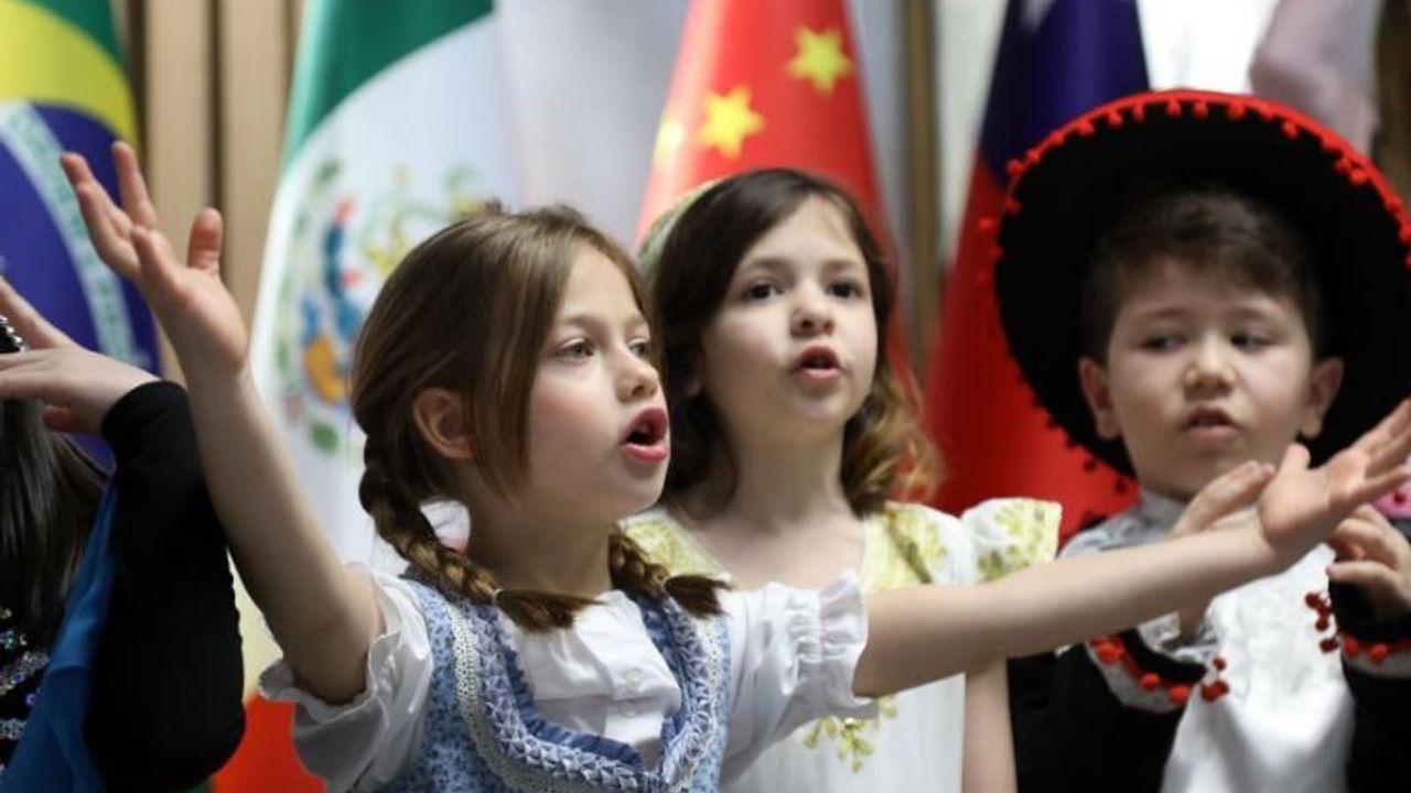 Atatürk Sanat Merkezi’nin ev sahipliğinde gerçekleşen sergiye, çocukların sahne performansları da eşlik etti. Renkli görüntülere sahne olan etkinlik, kültürler arası anlamlı bir buluşmaya dönüştü.