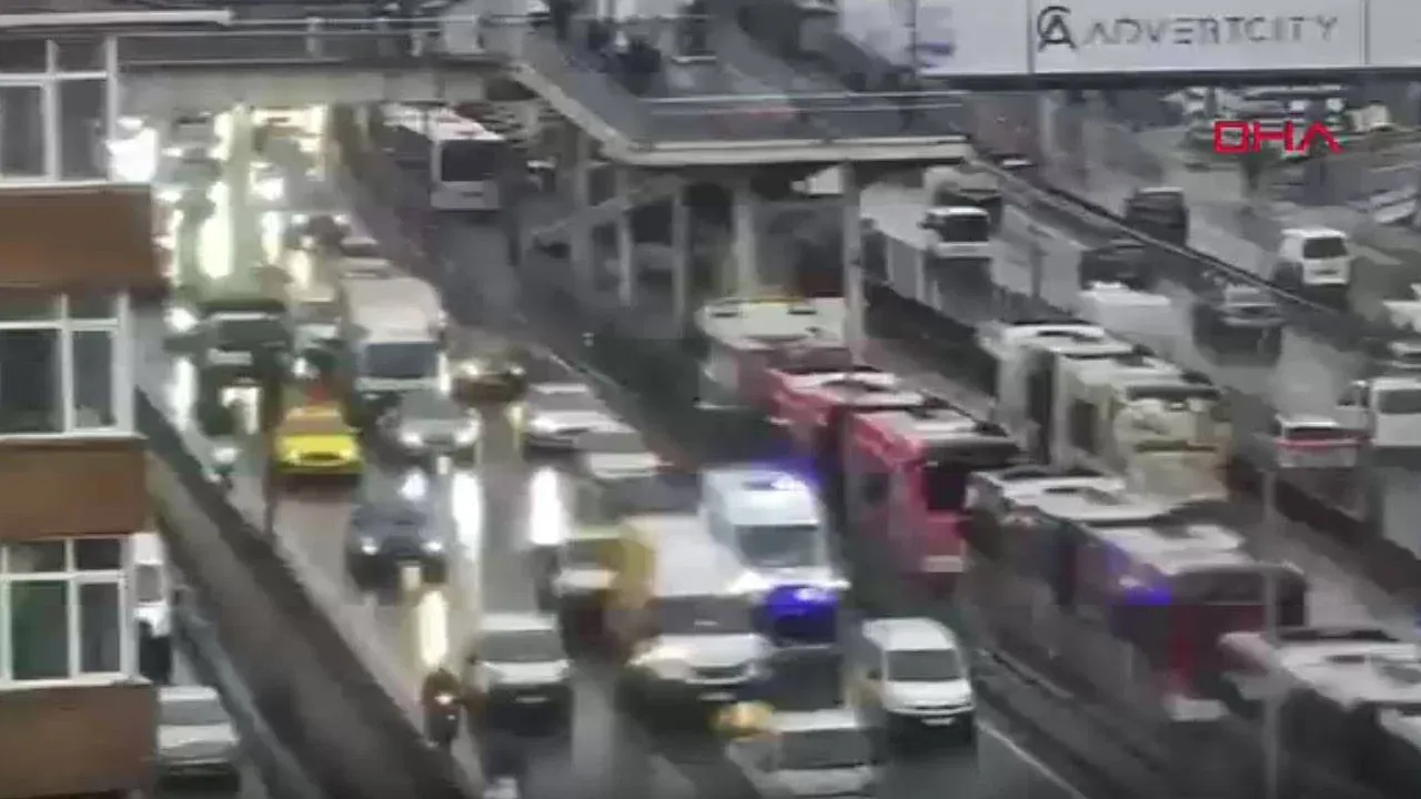 Kaza nedeniyle seferlerde bir süre aksama yaşanırken, her iki istikamette metrobüs kuyruğu oluştu.
