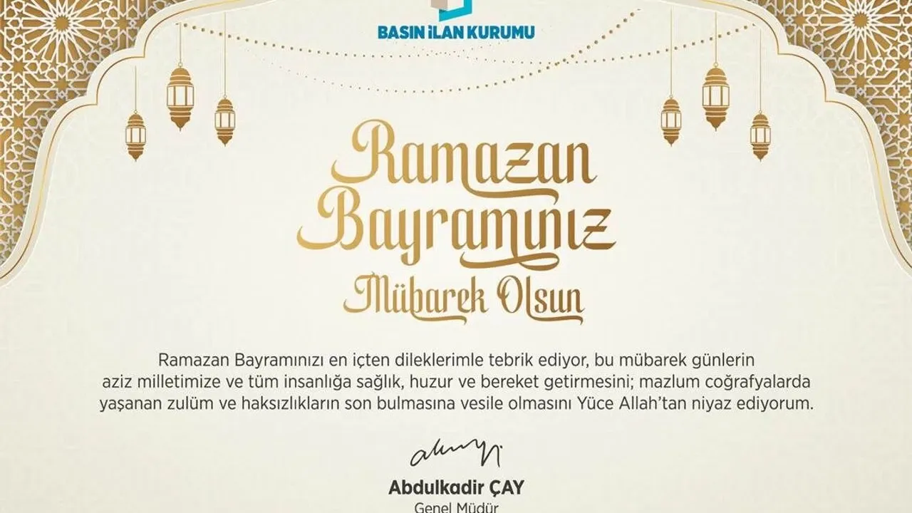 Basın İlan Kurumu Genel Müdürü Abdulkadir Çay, Ramazan Bayramı dolayısıyla bir tebrik mesajı yayımladı. Çay, mesajında birlik, beraberlik ve dayanışma vurgusu yaparak bayramın tüm insanlığa hayırlar getirmesi temennisinde bulundu.