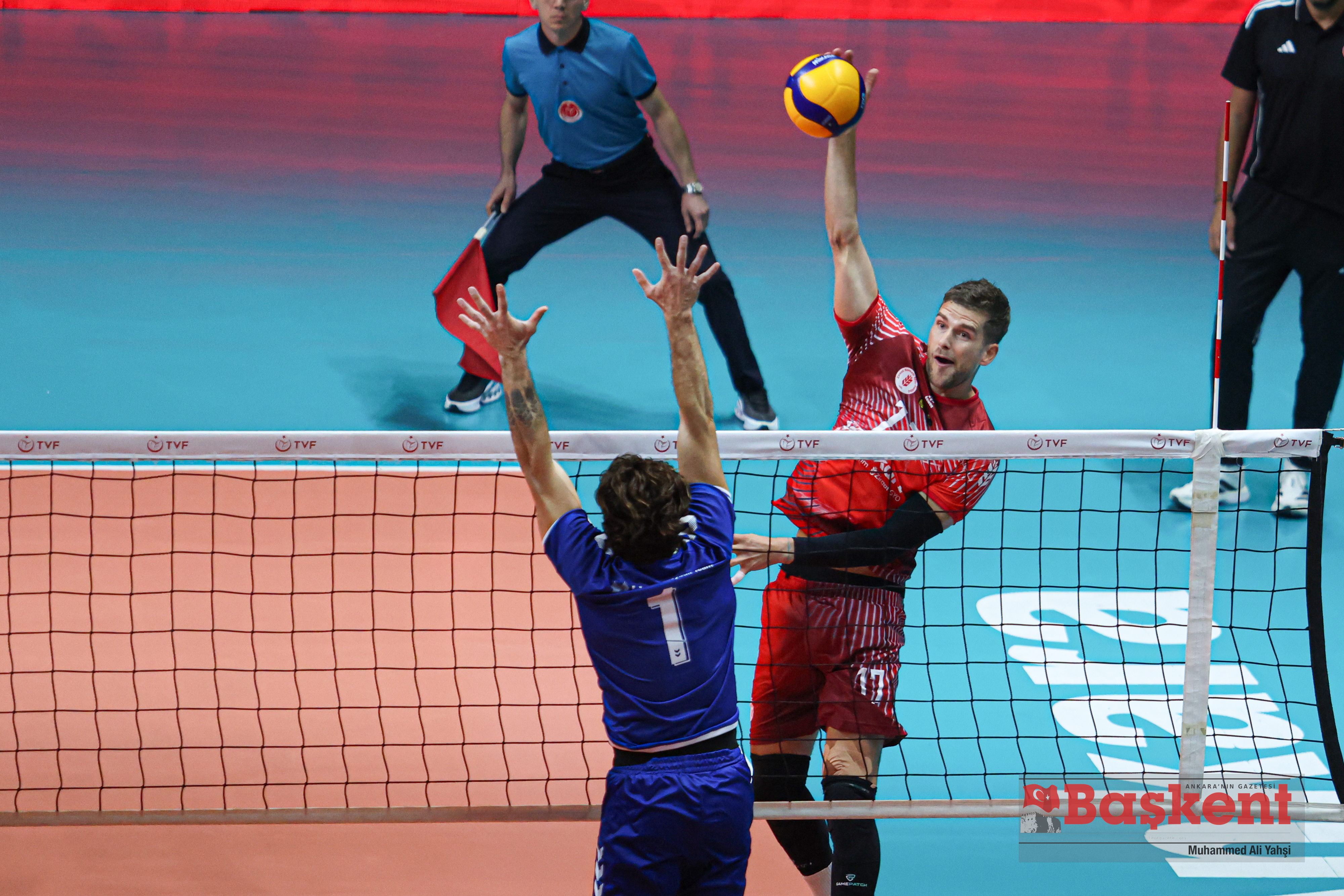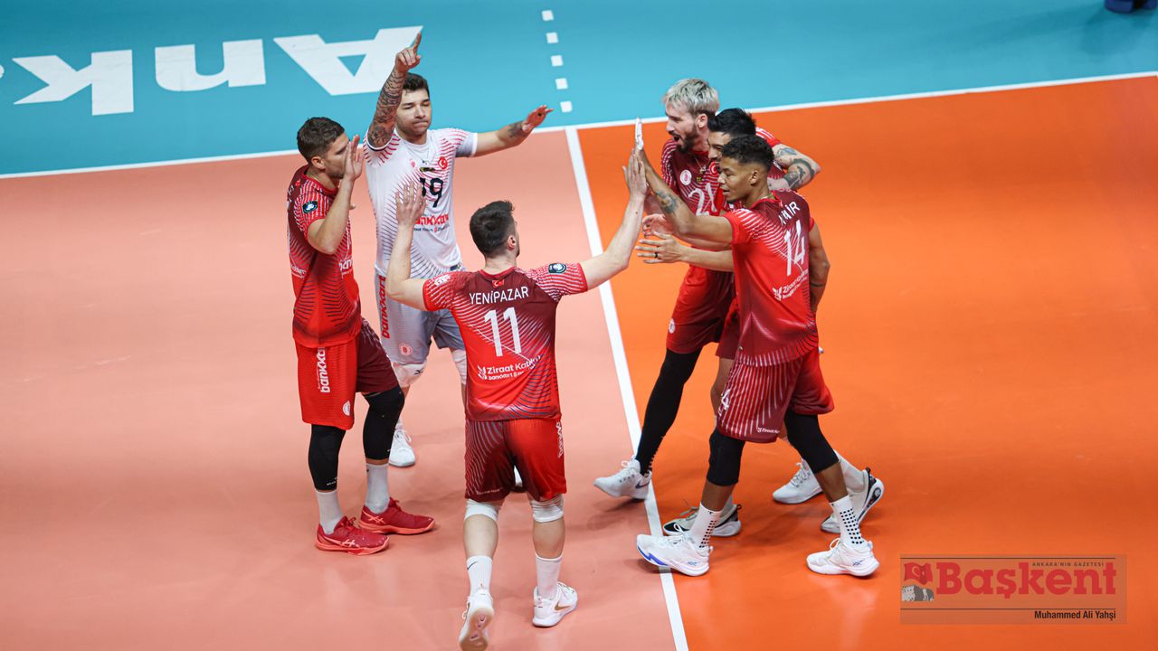 Üçüncü sette daha iyi oynayan Halkbank 25-22'lik skorla maça tutundu.
