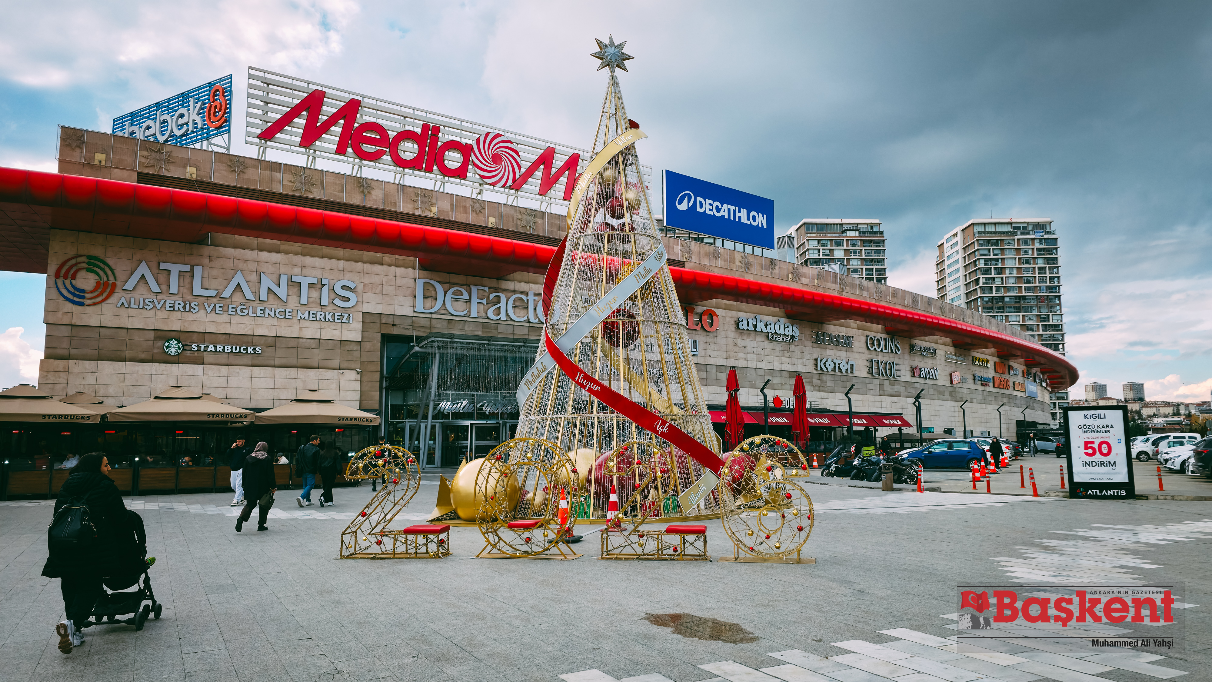 Batıkent'te bulunan Atlantis AVM'de ziyaretçilerini dev bir yılbaşı ağacı ile karşılıyor.