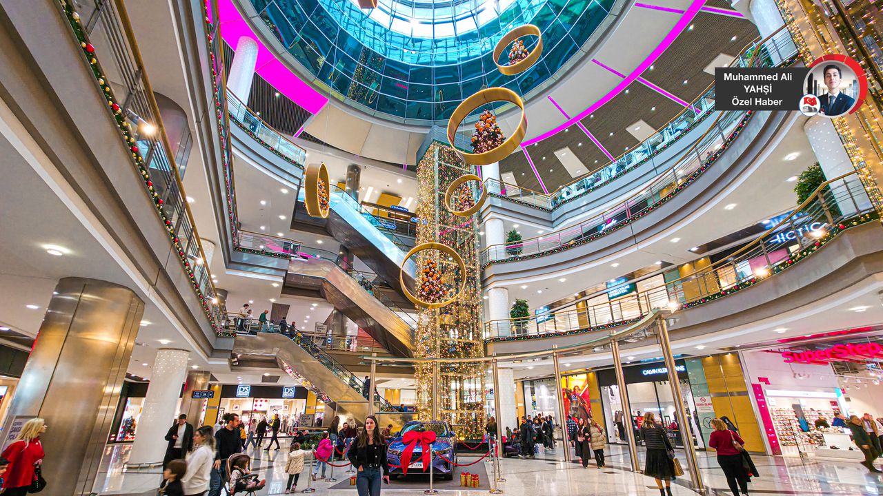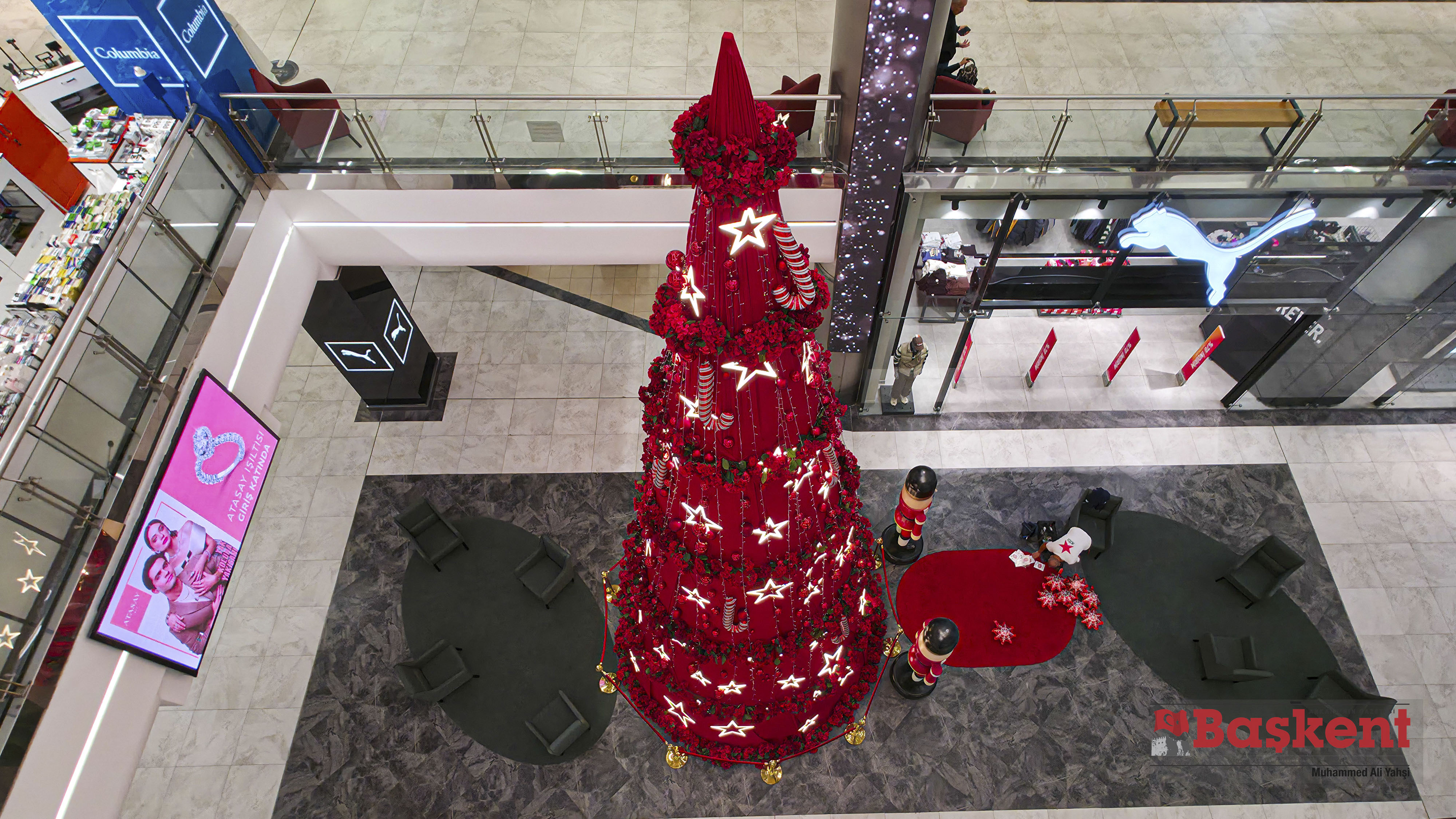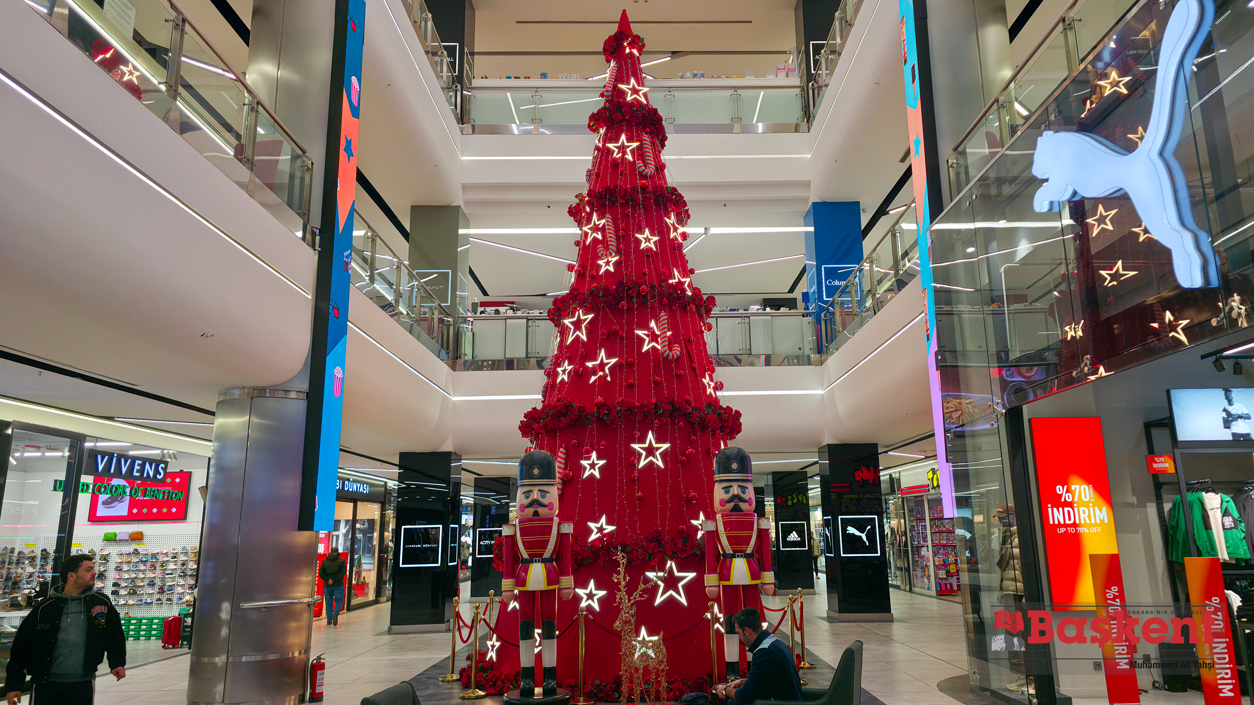 Korkuluklarda kullanılan kırmızı süslemeler ise mekana sıcak bir hava katıyor. AVM'nin zemin katında yer alan devasa yılbaşı ağacı ise ziyaretçilerin en büyük ilgi odağı.