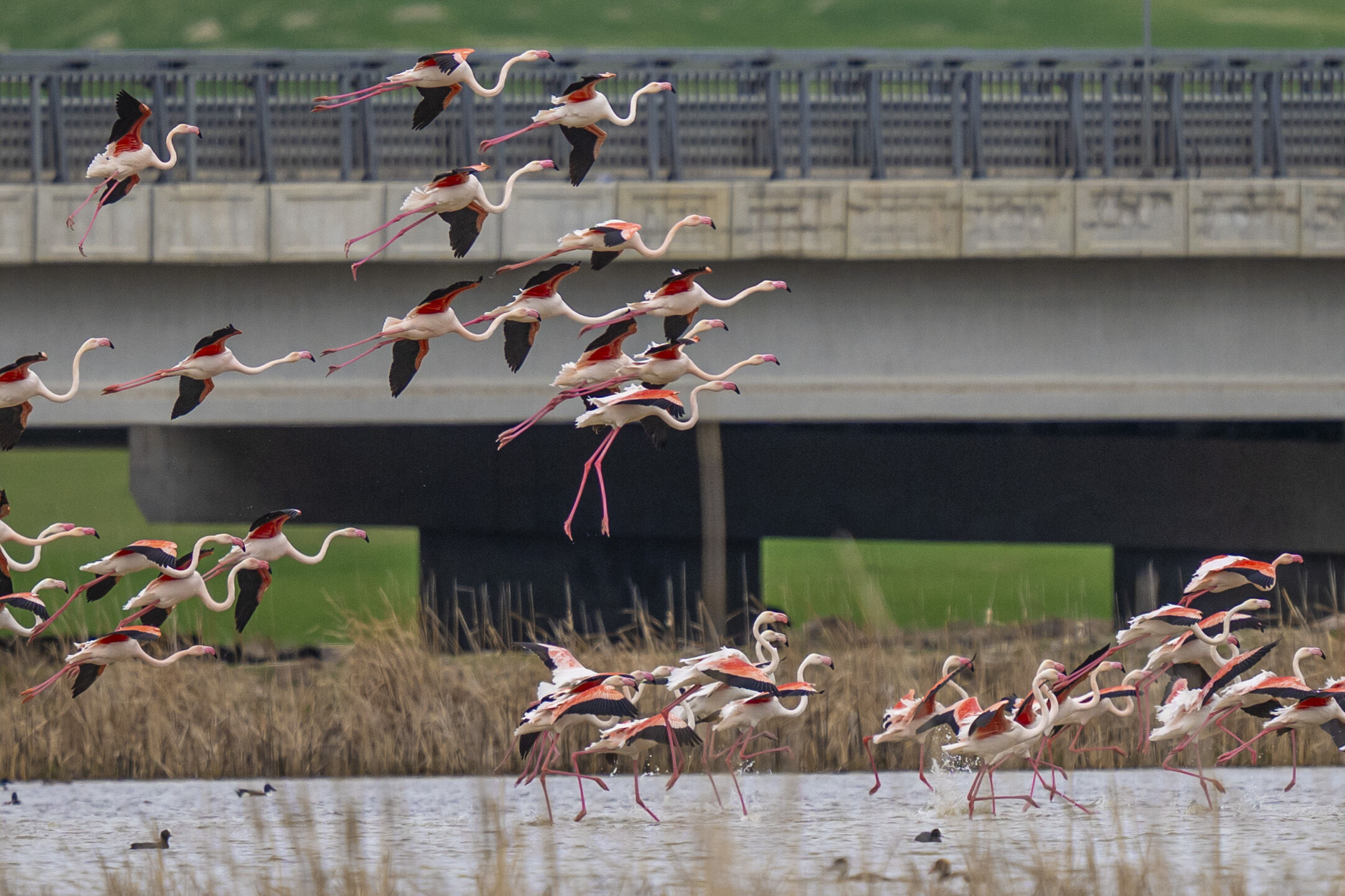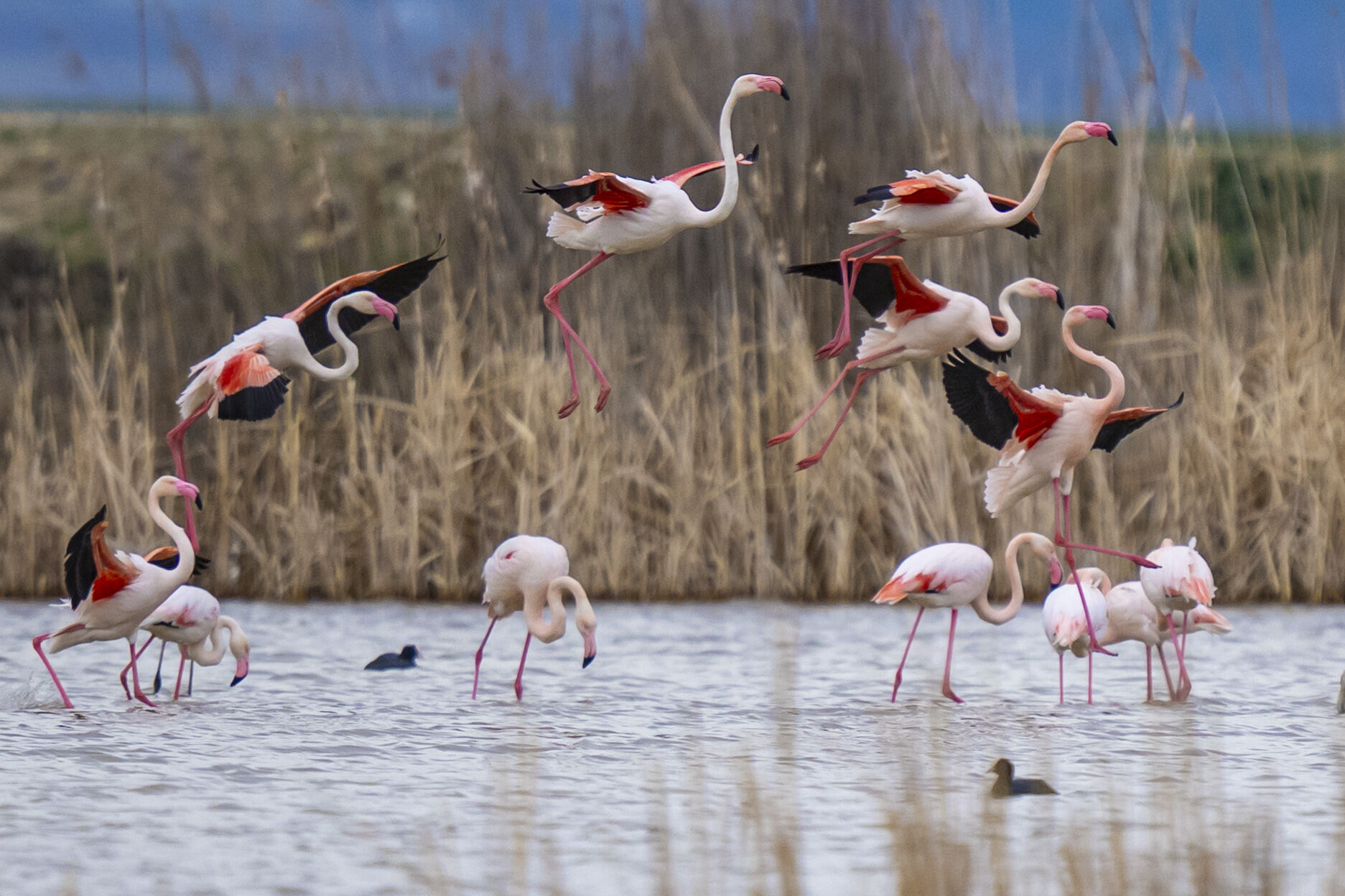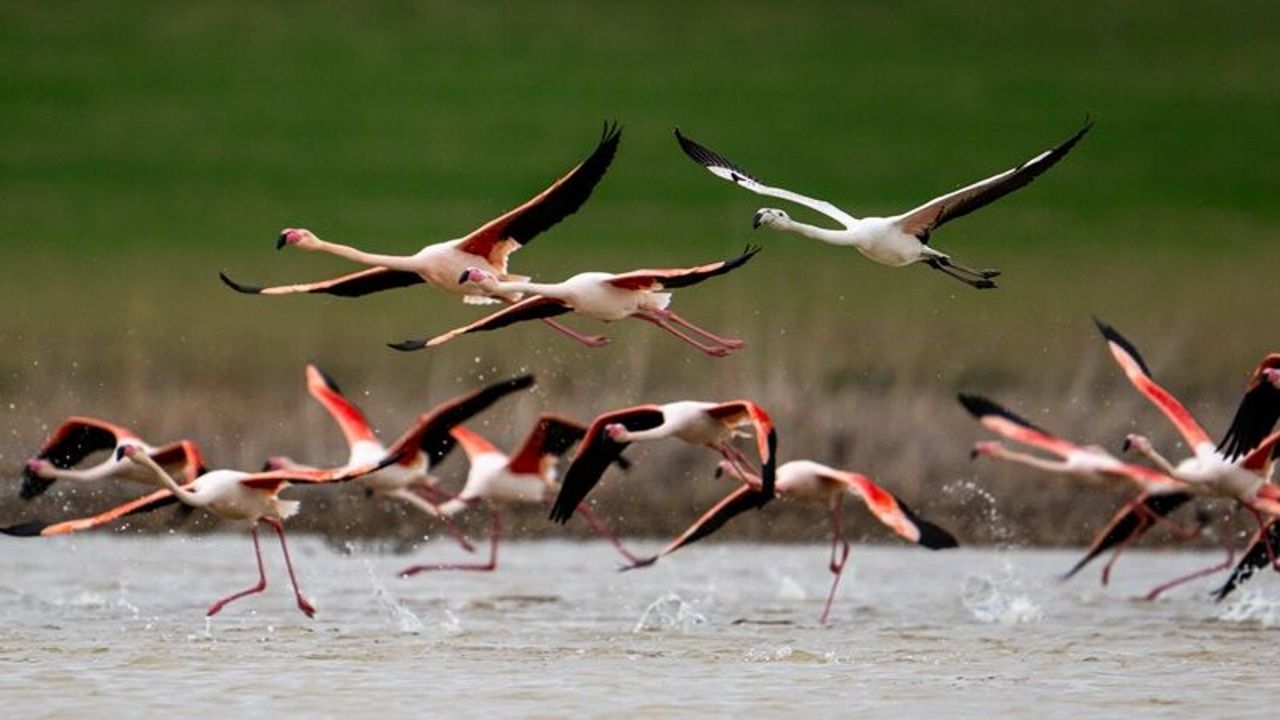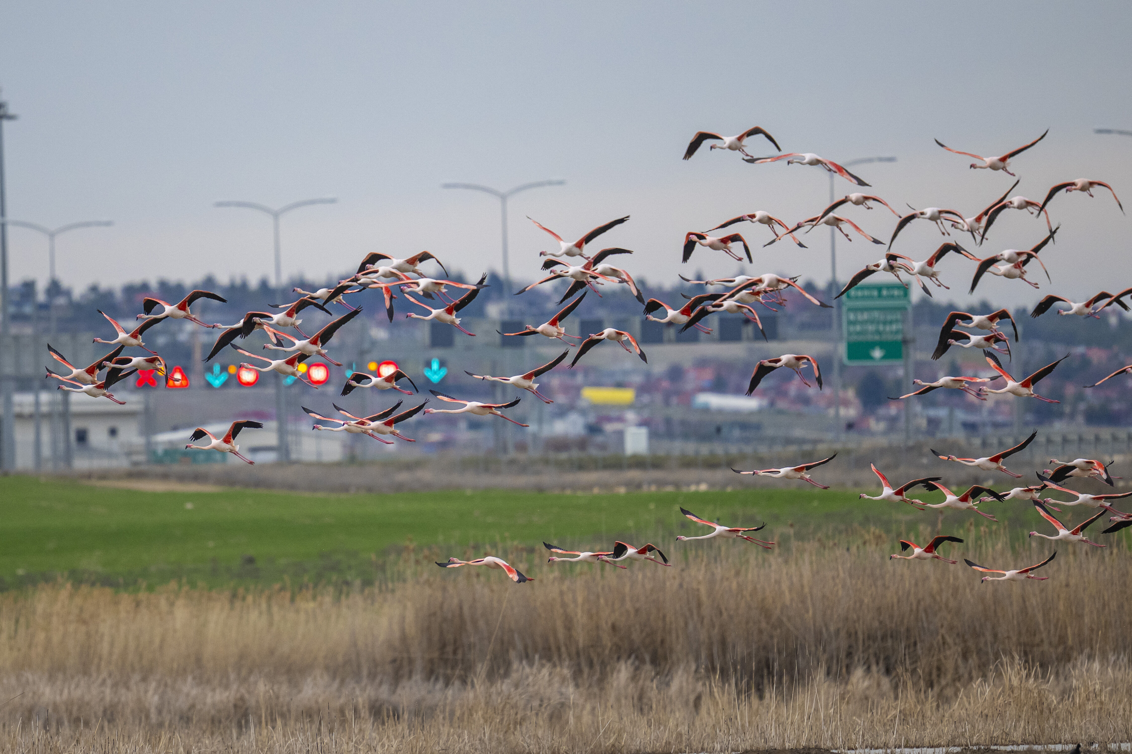 Ankara'nın Gölbaşı ilçesi Çayır deresi üzerindeki göletler farklı türden çok sayıda göçmen kuşa ev sahipliği yapıyor. Allı turna adıyla da bilinen flamingolar, göç yolculuklarına kısa bir mola vererek bölgeye renk katıyor.