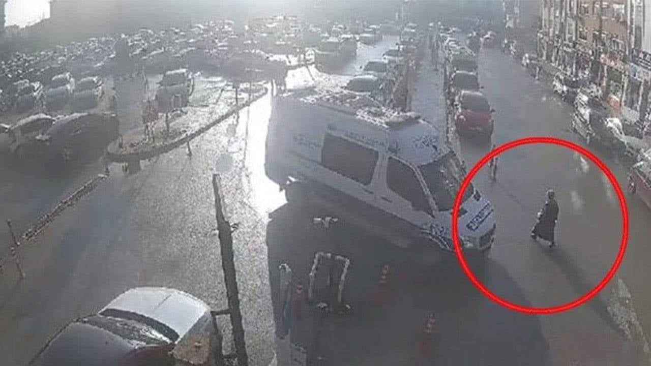 Görüntülerde, Yönlüer'in yolun karşısına koşarak geçtiği sırada seyir halindeki ambulansın çarpması yer alıyor.