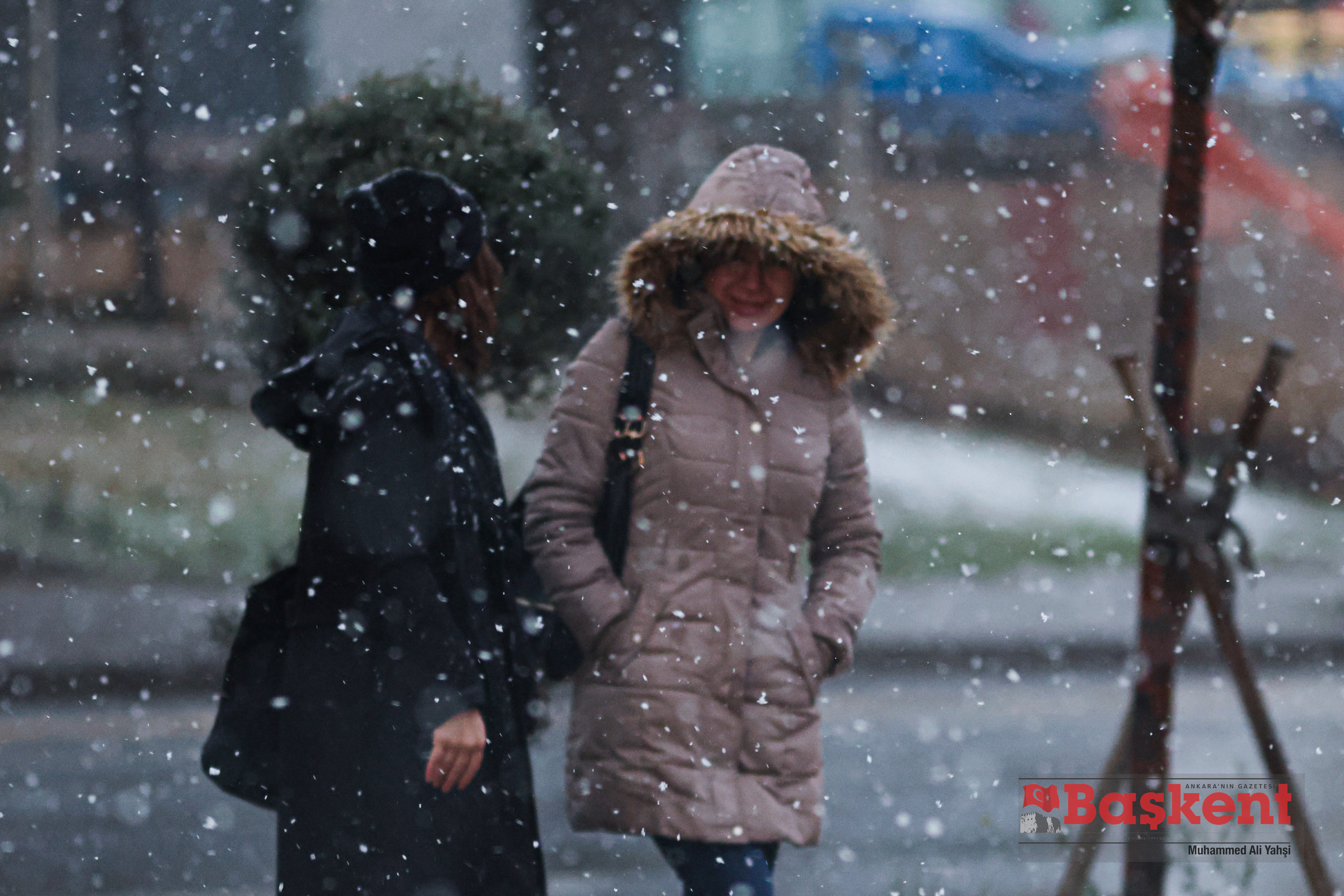 Ankara Valiliği’nin, Meteoroloji Genel Müdürlüğü Ankara Bölge Tahmin ve Erken Uyarı Merkezi verilerine dayanarak yaptığı uyarının ardından beklenen kar yağışı gece saatlerinde etkili oldu. Yağış, sabah saatlerinde yeniden başladı ve çatılar beyaza büründü.