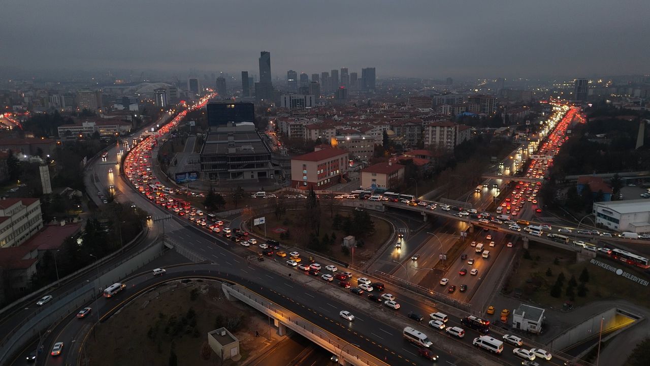 Kent genelinde işe gidiş ve dönüş saatlerinde etkisini artıran trafik yoğunluğu, dronla kaydedilen görüntülere yansıdı.
