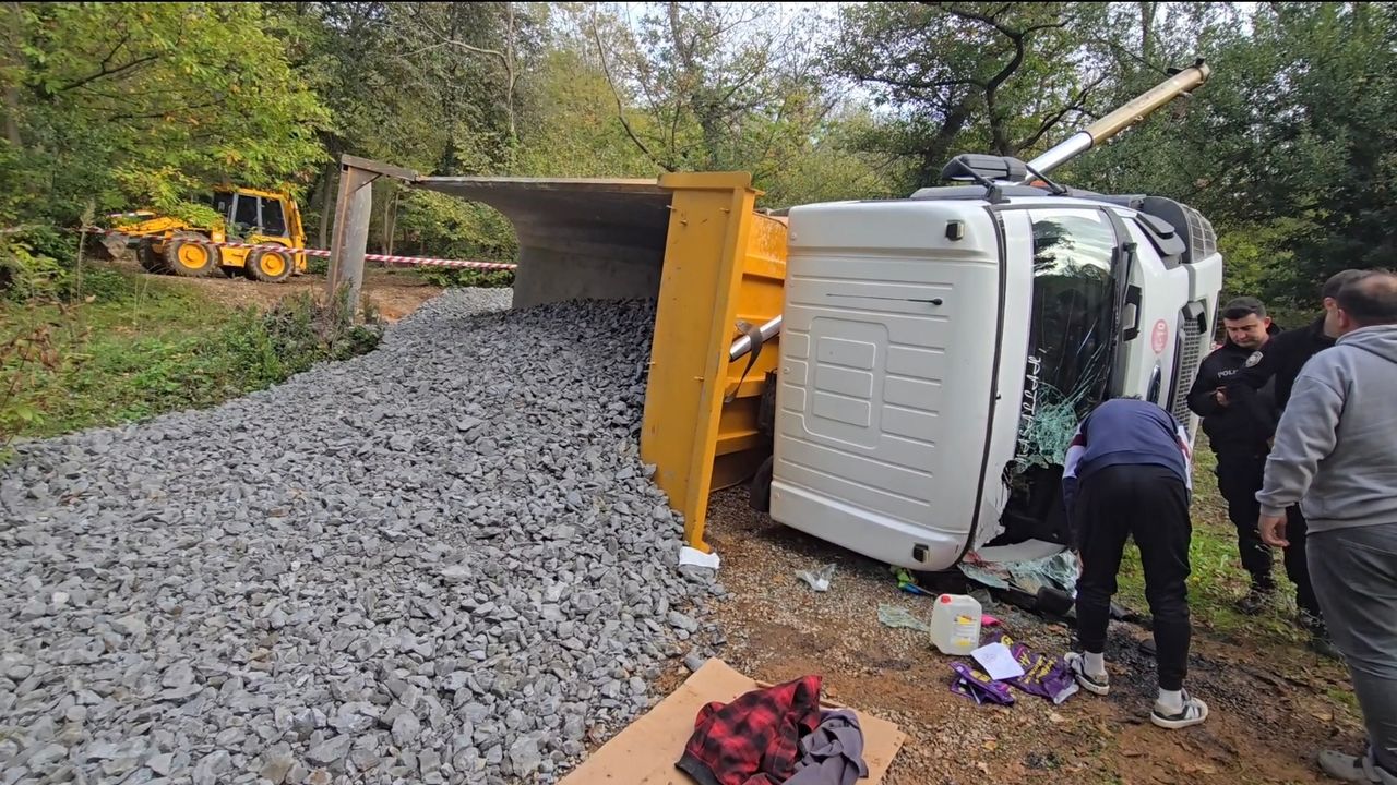 Kaza saat 15.15 sıralarında Beykoz Kaymakdonduran mevkiinde meydana geldi. İddiaya göre, M.Ç. idaresindeki 06 DNF 966 plakalı mıcır yüklü kamyon toprak yolda ilerlediği sırada sürücüsünün direksiyon hakimiyetini kaybetmesi sonucu devrildi.Kamyonda yüklü bulunan mıcır çevreye dağılırken, kazada kamyon şoförü M.Ç.yaralandı.İhbar üzerine olay yerine itfaiye sağlık ve polis ekipleri sevk edildi. İlk müdahalesi olay yerinde yapılan yaralı sürücü, ambulansla Ümraniye Eğitim ve Araştırma Hastanesi’ne kaldırıldı.Kamyonun yoldan kaldırılması için çalışma başlatılırken, kazayla ilgili inceleme sürüyor.