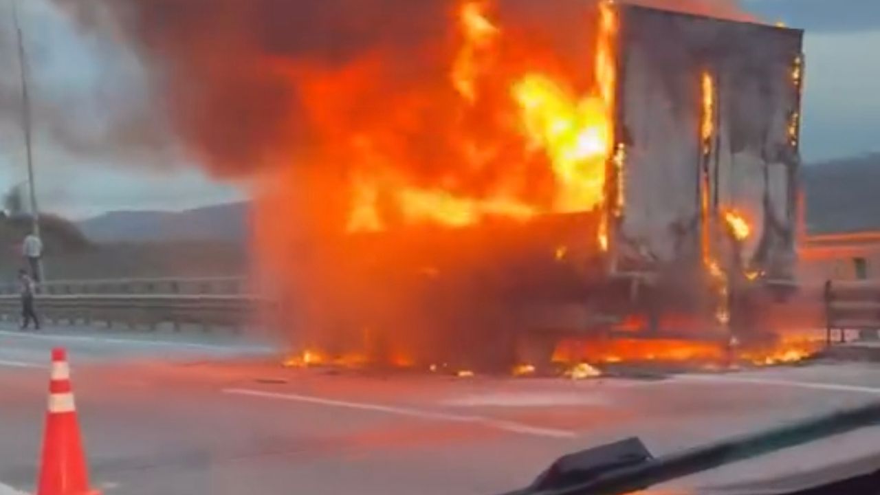 Yangın, saat 17.15 sıralarında Kuzey Marmara Otoyolu Ankara istikametinde çıktı. Otoyolda seyreden kamyonun kasasında bilinmeyen bir nedenle çıkan yangın kısa sürede büyüdü. Çevredekilerin ihbarı üzerine adrese itfaiye, acil sağlık ve polis ekipleri geldi. Alevler itfaiye ekipleri tarafından söndürüldü. Sağlık ekiplerinin kontrollerinde yangında yaralanan kimsenin olmadığı belirlendi. Kamyonun alev alev yandığı anlar çevredeki kişiler tarafından cep telefonu ile kaydedildi.
