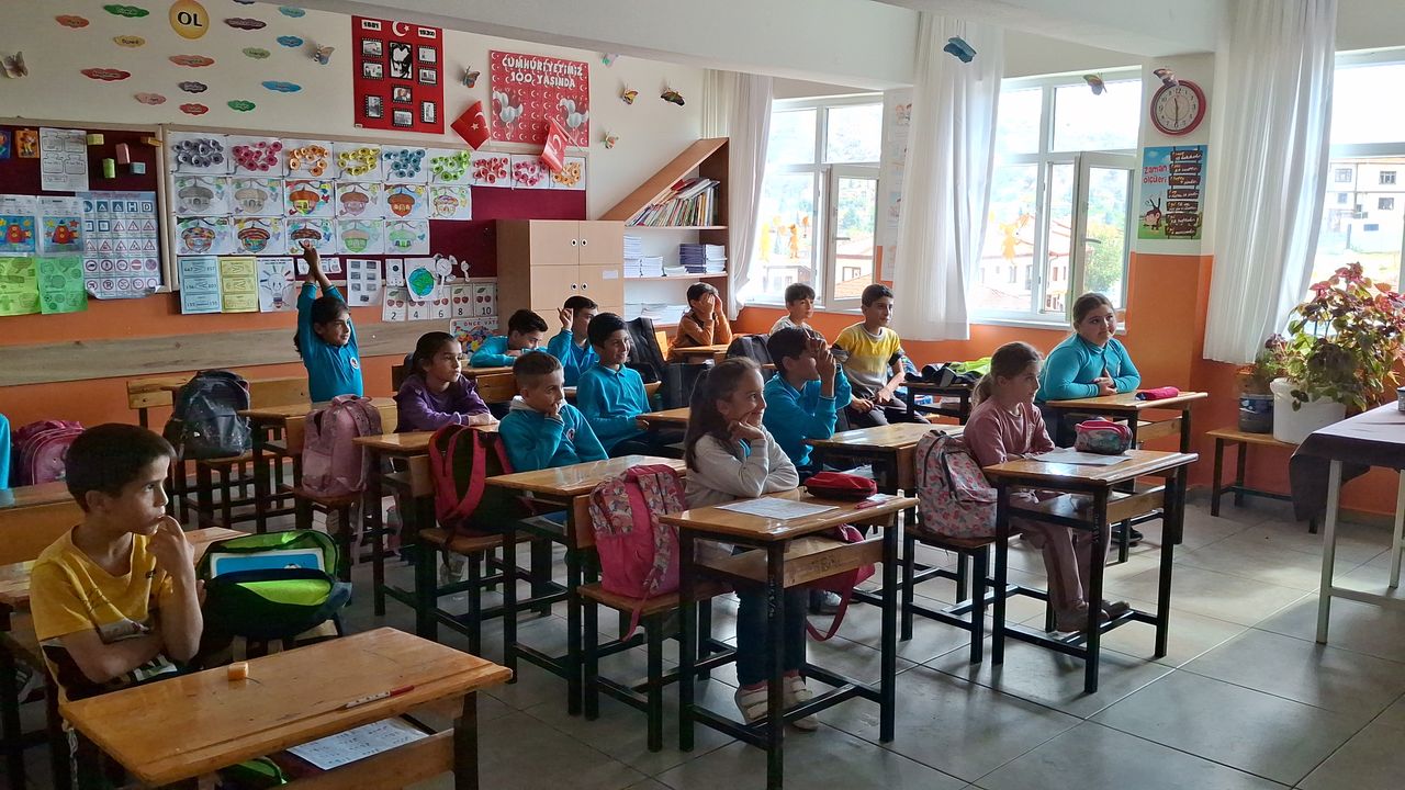 Çalışma kapsamında öğrencilere, trafik, yaya, sürücü, trafik lambaları gibi konularda eğitim verildi.