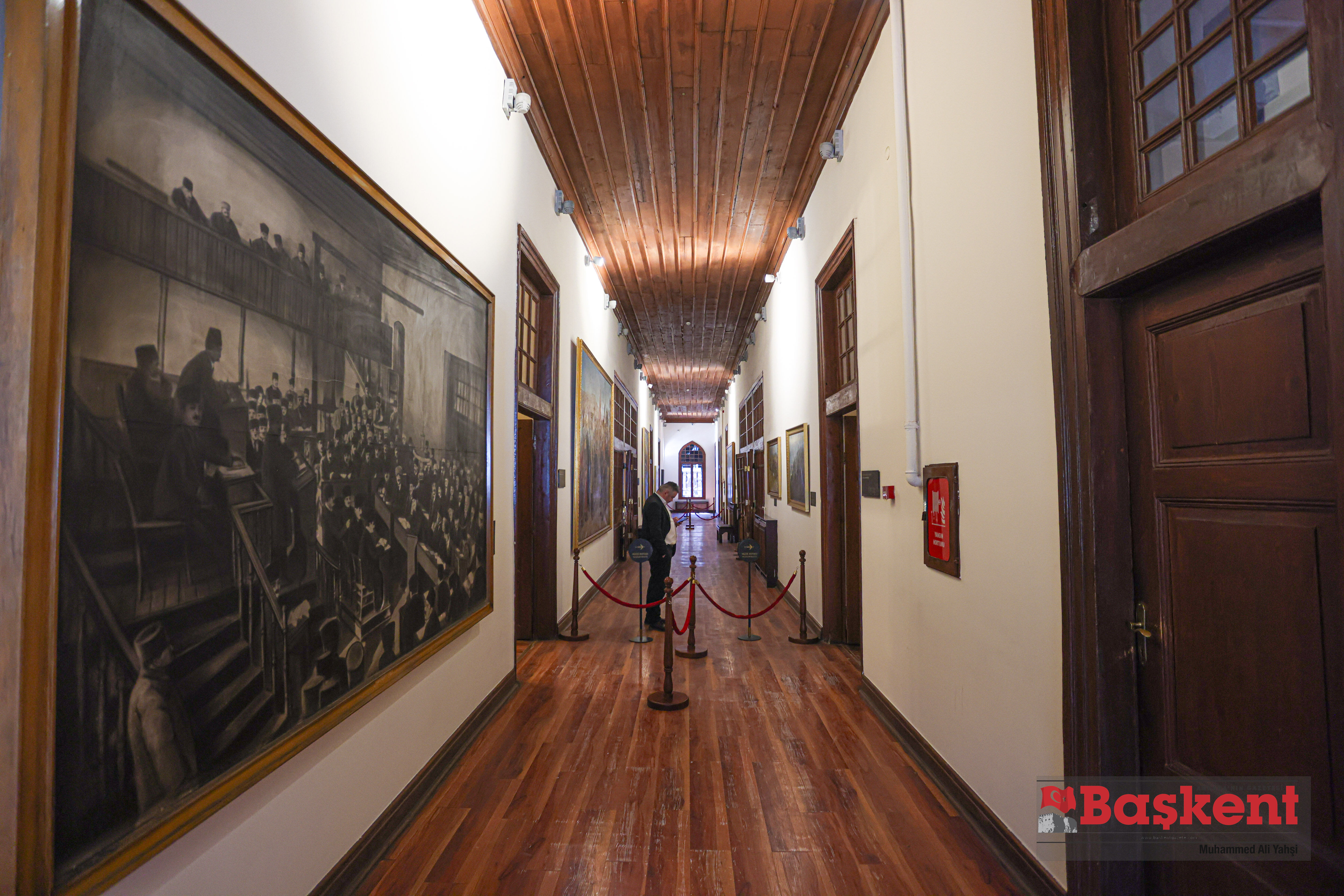 Yapının ana koridorunda, sağ ve sol duvarlarda Cumhuriyet Dönemi ressamlarına ait yağlı boya tablolar ile Genel Kurul Salonu’ndaki oturumu gösteren fotoğraflar sergileniyor.