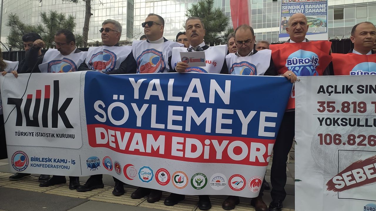 Birleşik Kamu-İş Konfederasyonu tarafından yapılan açıklamada, ülke ekonomisindeki son gelişmeler ve TÜİK verilerine ilişkin değerlendirmelerde bulunarak şunlara yer verdi: "Yanlış ekonomi politikalarında ısrar ve kötü yönetim sonucu içine düştüğümüz ekonomik kriz aydan aya derinleşirken, TÜİK’in gerçekleri makyajlamaya yönelik beyhude çabası sürüyor. Verdiği yanlış rakamlarla emekçinin ücretinin erimesine yol açan, kamu emekçisi ve emeklisinin zammını düşürmek için adeta gayret sarf eden; ama ne hikmetse 'hakkımızı çalıyor' dediğimiz için bizi dava eden TÜİK, 'yalancı ve hırsız' imalarıyla barışmasını gerektirecek şekilde bir enflasyon raporu daha yayımladı."