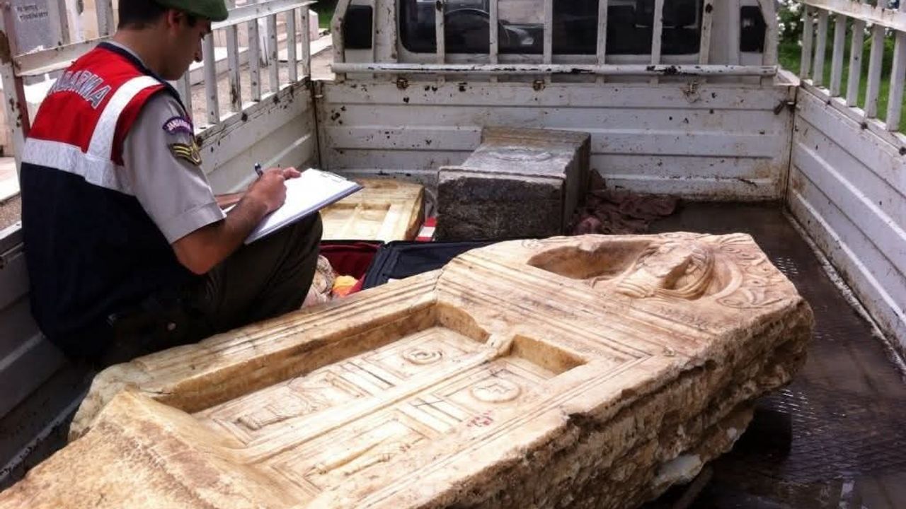 Bursa İl Jandarma Komutanlığı ekipleri, Orhaneli-Harmancık kara yolunda bir kamyoneti şüphe üzerine durdurdu. Araçta yapılan aramada brandanın altında aslan başı heykeli, Roma Dönemi’ne ait olduğu düşünülen tapınak taşı ile mezar steli ve rölyef ele geçirildi. Jandarma, araçta bulunan 3 kişiyi gözaltına alırken, ele geçirilen tarihi eserleri ise Bursa İl Müze Müdürlüğü'ne teslim edildi.