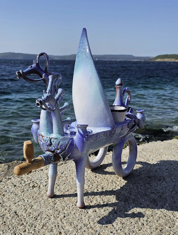 Seramiklerimde Çanakkale’nin geçmişinden, Truvalı Helen’den, Hektor’dan , bölgenin zeytinlerinden yapılan zeytin yağı için kaplar, üzümünden yapılan şaraplar için fıçılar yapıyorum. Savaşı, aşkı, ihaneti resmediyorum eserlerimde naçizane. Çamuru zorlamayı seviyorum. Ayakta zor durabilecek riskli işler yapmaktan ve başarılı olmasından keyif alıyorum. Başarılı olmayanlardan da ders çıkarıp yoluma devam etmekten hiç rahatsız olmuyorum.