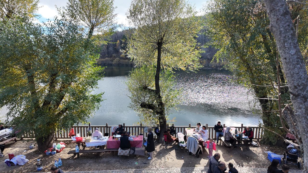 Sabahın erken saatlerinden itibaren bölgeye gelen çok sayıda ziyaretçi, göl çevresinde yürüyüş yaptı, fotoğraf çekti ve mesire alanlarında piknik yaparak sonbaharın tadını çıkardı.