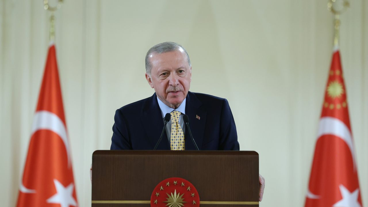 Cumhurbaşkanı Erdoğan, dünya siyasetinin yeni baştan şekillendiğini belirterek, "Yakın çevremizde çok ciddi krizler, çatışmalar ve gerilimler yaşanıyor. Yıllarca bize ahlak satan, demokrasiden dem vuran tekellerine aldıkları hak, hukuk, özgürlük kavramlarını bir sopa olarak kullanan aktörlerin çirkin yüzleri tek tek ortaya çıkıyor. Medeniyet dediklerinin tek dişi kalmış canavar olduğunu hepimiz bir kez daha görüyoruz. Devletimiz tecrübeli ve liyakatli kadroların yönetiminde bu zorlu süreçleri hamdolsun çok başarılı bir şekilde yönetmektedir. Oynanan oyunların da kurulan tuzakların da tuzak kuranlarla birlikte kuzu postu giydirilmiş sırtlan sürülerinin de gayet farkındayız. Bugün geldiğimiz noktada Türkiye, kendi güvenliği için yalnızca sınırları dahilinde değil sınırların ötesinde de her türlü adımı atmaktadır. Nerede bir tehdit ve tehlike varsa kimseden icazet almadan kaynağında etkisiz hale getiriyoruz. Kahraman ordumuzun ve diğer güvenlik birimlerimizin operasyonları sayesinde terör örgütlerinin hareket kabiliyetini ciddi ölçüde sınırlandırdık. Savunma sanayinde 23 yılda geldiğimiz seviye zaten ortada. Daha önce yüzde 80 oranında yurt dışına bağımlı olduğumuz bu alanda şimdi yüzde 80 yerlilik oranına ulaştık. Bugün İHA'lar, SİHA'lar, füzeler, roketler, gemiler, helikopterler ve tanklar dahil hemen her alanda kendi ihtiyaçlarımızı kendimiz karşılayabiliyoruz. İnşallah yarın sıra savaş uçaklarına, uçak gemilerine gelecek. Cenab-ı Allah'a sonsuz şükürler olsun. Azmettik, çalıştık, kendimize güvendik ve işte 23 yılda buralara geldik" ifadelerini kullandı.