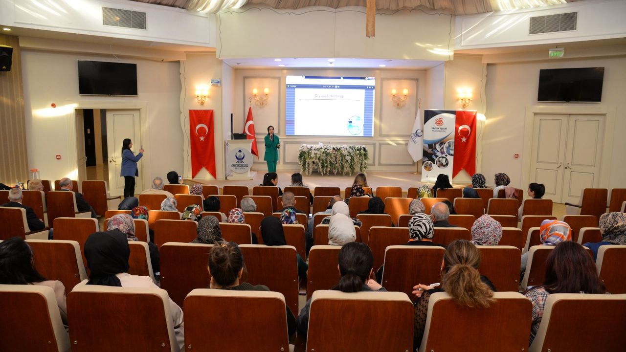 Seminerin konuşmacısı Uzm. Dyt. Sümeyye Şerifoğlu, diyabetin erken teşhisi, diyabetle yaşam, doğru beslenme alışkanlıkları ve hastalığın kontrol altında tutulmasında bireysel farkındalığın önemi üzerine bilgi verdi. Şerifoğlu, diyabetin yalnızca tıbbi bir durum değil, aynı zamanda sağlıklı yaşam bilincinin önemli bir parçası olduğunu vurguladı.