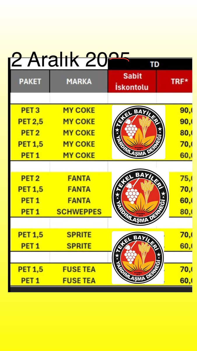 Tekel Bayileri Yardımlaşma Derneği (TBYD) Başkanı Erol Dündar sosyal medya hesabından Coca Cola grubuna grubuna zam geldiğinin bilgisini paylaştı.