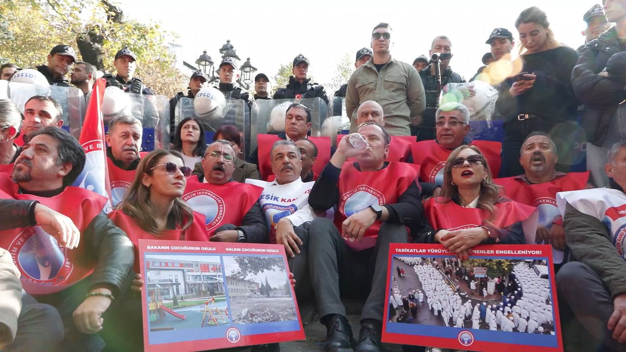 Eğitim-İş Sendikası üyeleri, Milli Eğitim Bakanlığı ve bağlı kuruluşların 2026 yılı bütçe görüşmelerinin gerçekleştirildiği TBMM'ye yürümek üzere bakanlık önünde toplandı. Üyelerin yürüyüşü, polis tarafından durduruldu. Yaşanan kısa süreli arbedenin ardından sendika üyeleri, sloganlar eşliğinde oturma eylemi yaptı. Eğitim-İş Genel Başkanı Kadem Özbay, "1 saattir emniyet mensuplarıyla görüşüyoruz. Ancak ülke o hale gelmiş ki trafiği engellemeden, ülkenin kaldırımlarından yürümek istediğimizi belirtmemize rağmen, 'asla olmaz' yanıtı veriyorlar. Bu bütçe, ülkedeki herkesi ilgilendiriyor. Biz de tüm yurttaşlarımızı buraya davet ediyoruz. Halkın önünde hiç kimse olamaz. Ankara'da bulunan tüm yurttaşlarımızı, demokratik kitle örgütü temsilcilerini davet ediyoruz" dedi. (