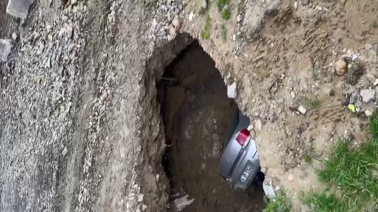 Esenyurt’ta park halindeki bir otomobil, boş arazide oluşan göçüğe düştü. O anlar cep telefonu kamerasına yansıdı. Otomobilin sahibi Cevdet Turahan "Bu arabadan çok çektim. 2 kere motor yedi. Çekmediğim kalmadı. Her gün arabama vuruyorlardı. O yüzden böyle görünce üzülmedim, sevindim. Üstünü gömün gitsin" dedi.