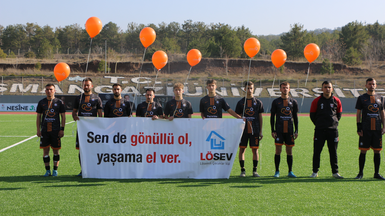 Eskişehir Osmangazi Üniversitesi Stadyumu'nun ev sahipliği yaptığı maça, Eskişehir Birinci Amatör Lig ekiplerinden Baransel Spor Futbol Kulübü ile Çanakkale'nin Bayramiç Futbol Kulübü'nün futbolcuları, ellerinde turuncu renkli balonlarla çıktı.