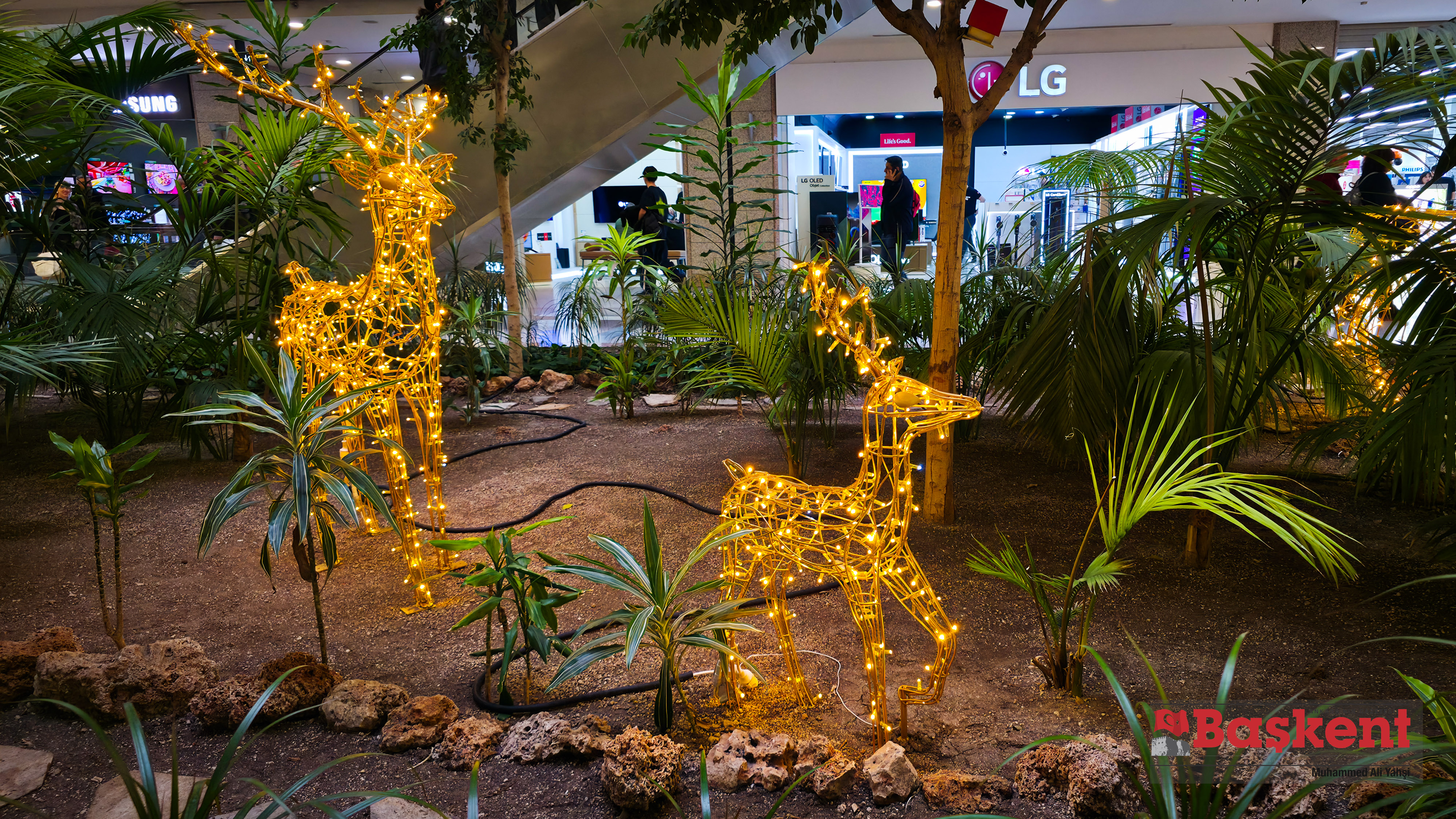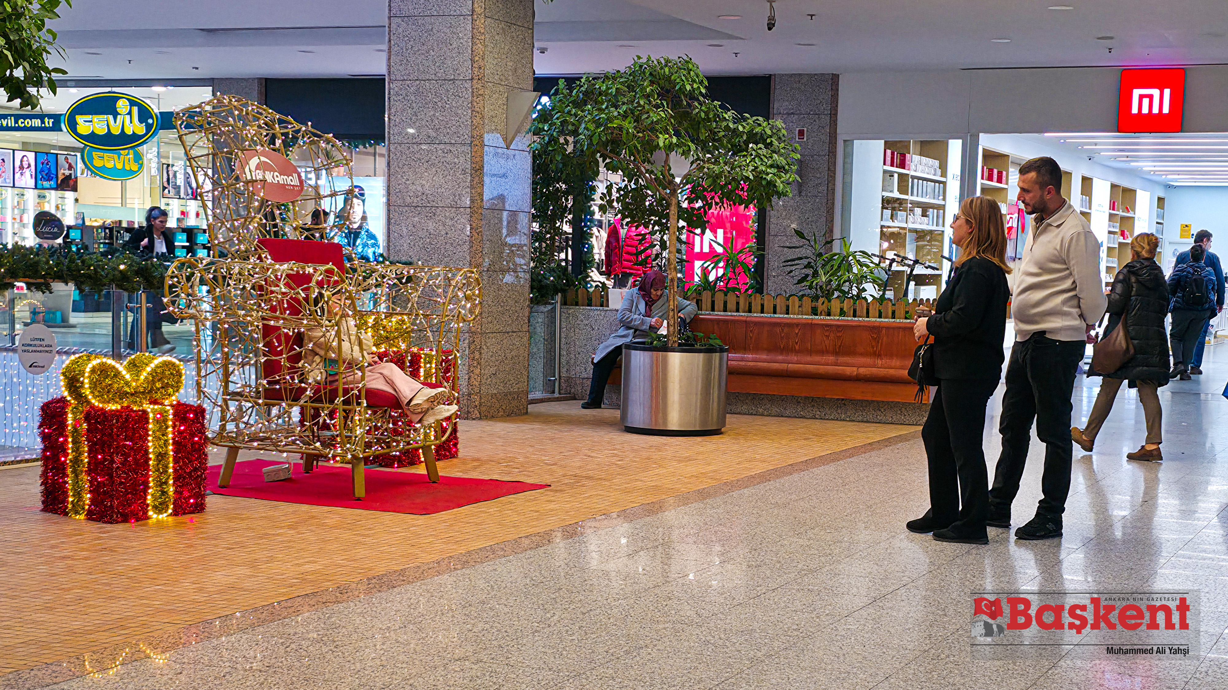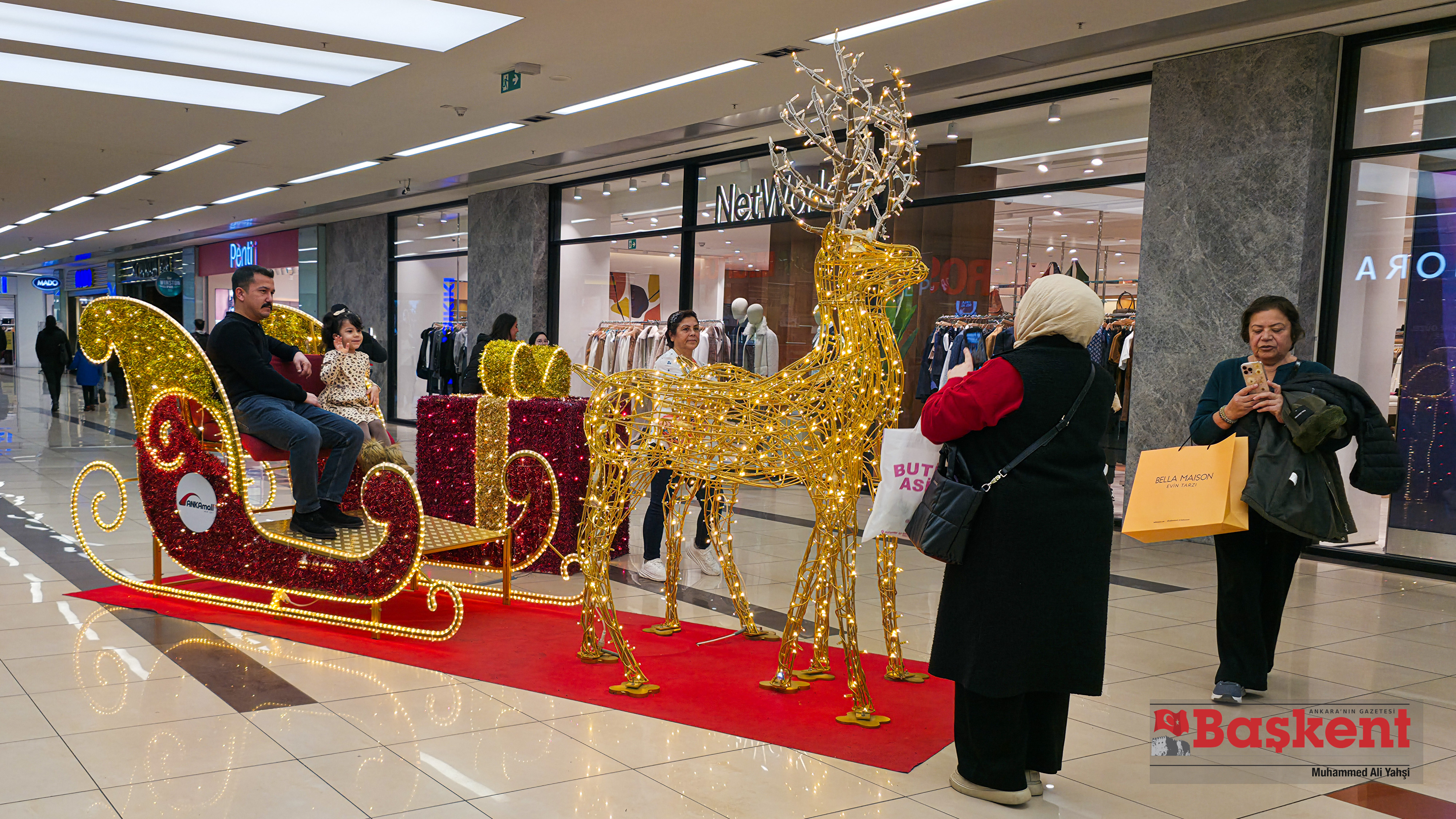 Başkent'in en büyük AVM'lerinden Ankamall AVM, ihtişamlı yeni yıl süslemeleri ile ziyaretçilerine eşsiz bir atmosferde alışveriş yapma imkanı sunuyor. AVM'nin girişinde ihtişamlı bir yılbaşı ağacı yer alırken katlara yerleştirilmiş Noel Baba arabası, ren geyikleri ve tavandan sarkan led ışıklı süslemeler vatandaşların beğenisini topluyor.