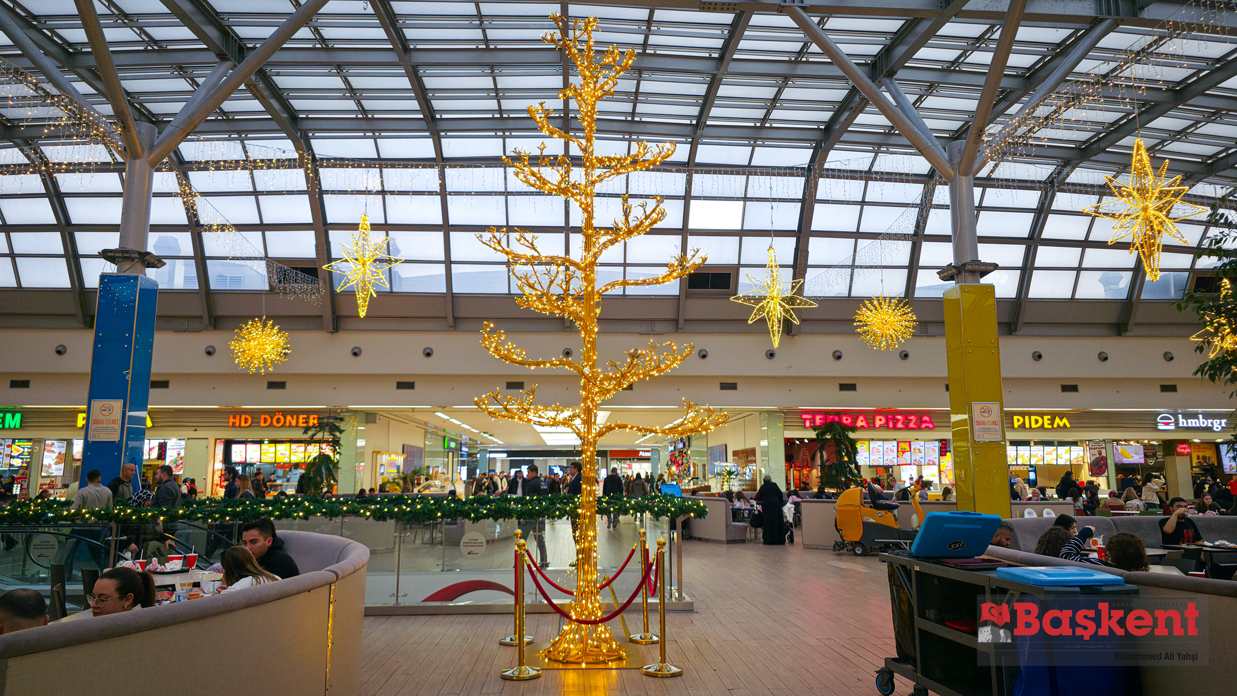 Batıkent'te bulunan Atlantis AVM'de ziyaretçilerini dev bir yılbaşı ağacı ile karşılıyor. AVM'nin tavanından sarkan yılbaşı süsleri, korkulukları süsleyen LED ışıklar ve çam ağaçlarından oluşan dekorasyon, misafirlerine güzel bir görüntü sunuyor.