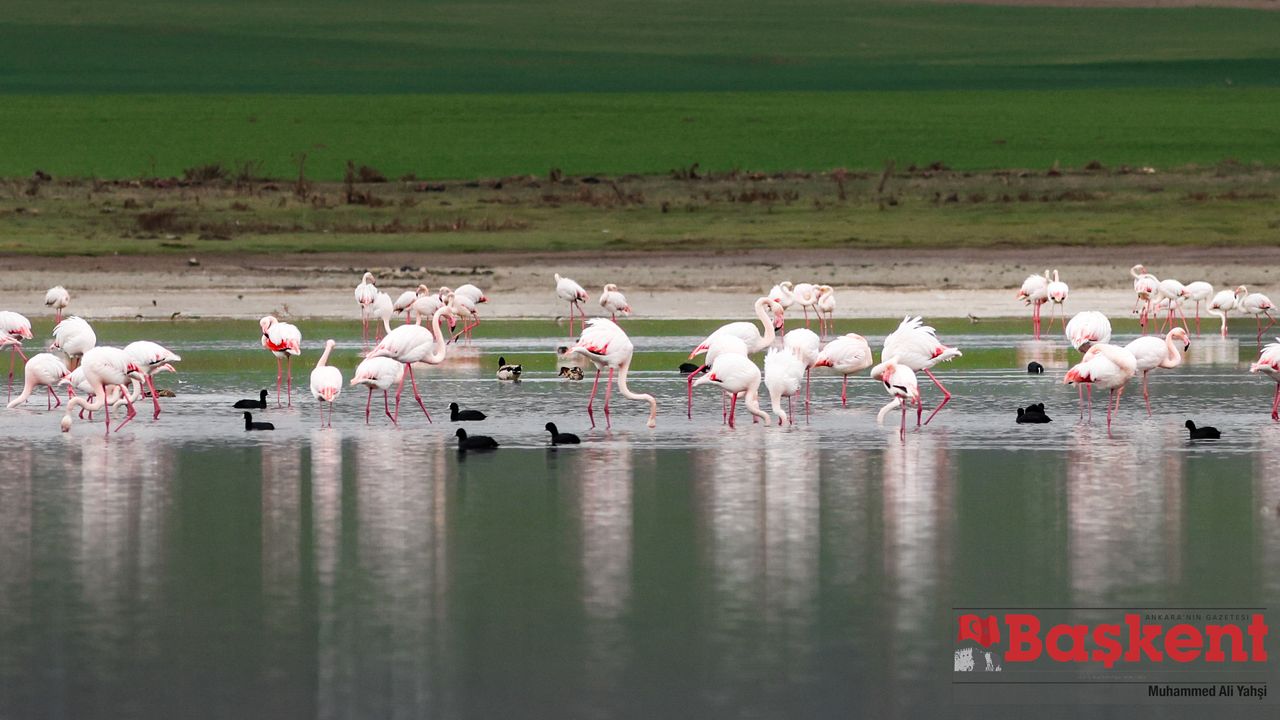 Ankara’nın Gölbaşı ve Şereflikoçhisar ilçelerinde yer alan göletleri göç yolculuklarında mola noktası olarak kullanan bu zarif kuşlar, özellikle Gölbaşı’ndaki Sel Kapanı Göleti’nde göz kamaştıran görüntüler oluşturuyor.
