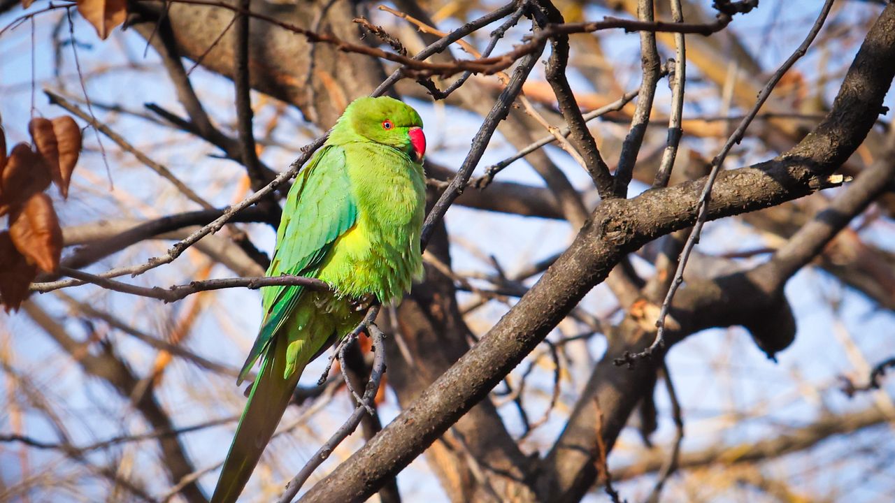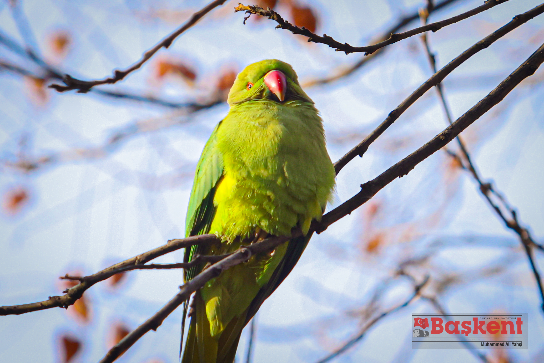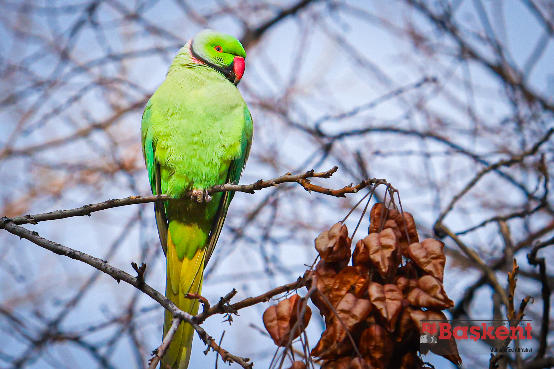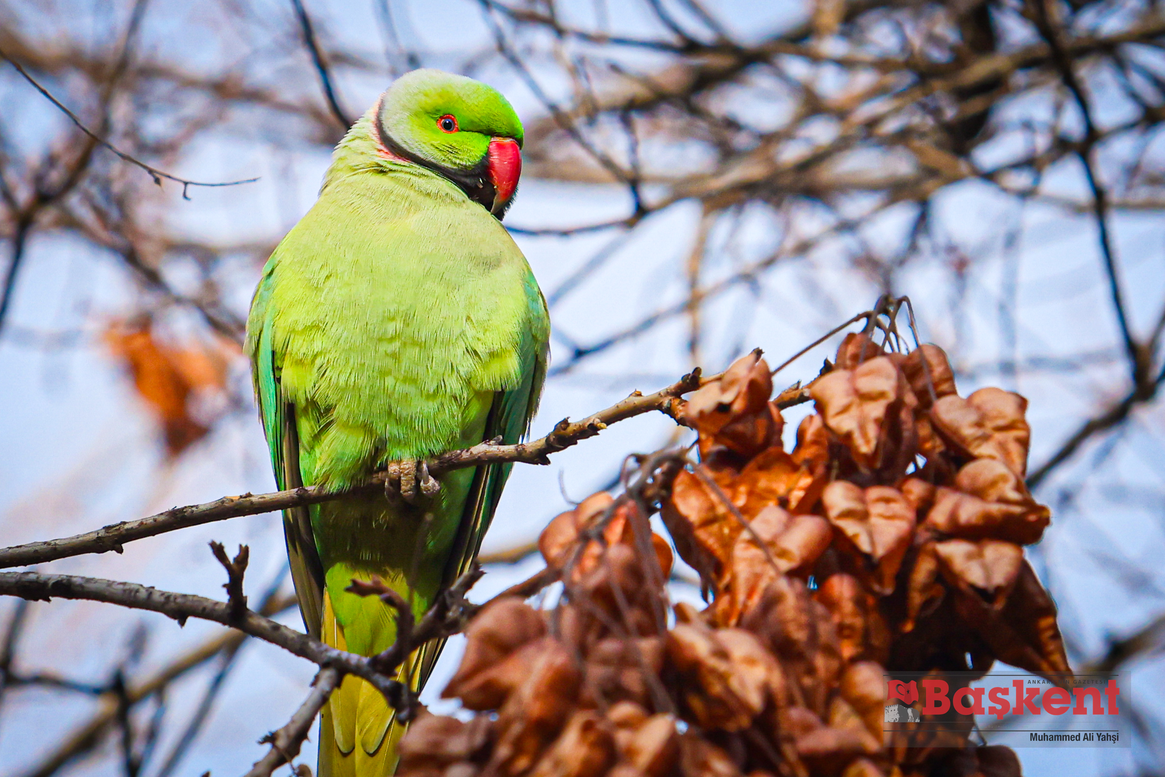 Doğal yaşam alanları Afrika ve Güney Asya olan yeşil papağanlar (Psittacula krameri), Ankara’nın merkezinde yer alan Kurtuluş Parkı’nda objektife yansıdı. Halkalı boyunlu paraket olarak da bilinen bu papağanlar, şehir parklarına uyum sağlayabilen yapılarıyla dikkat çekiyor.