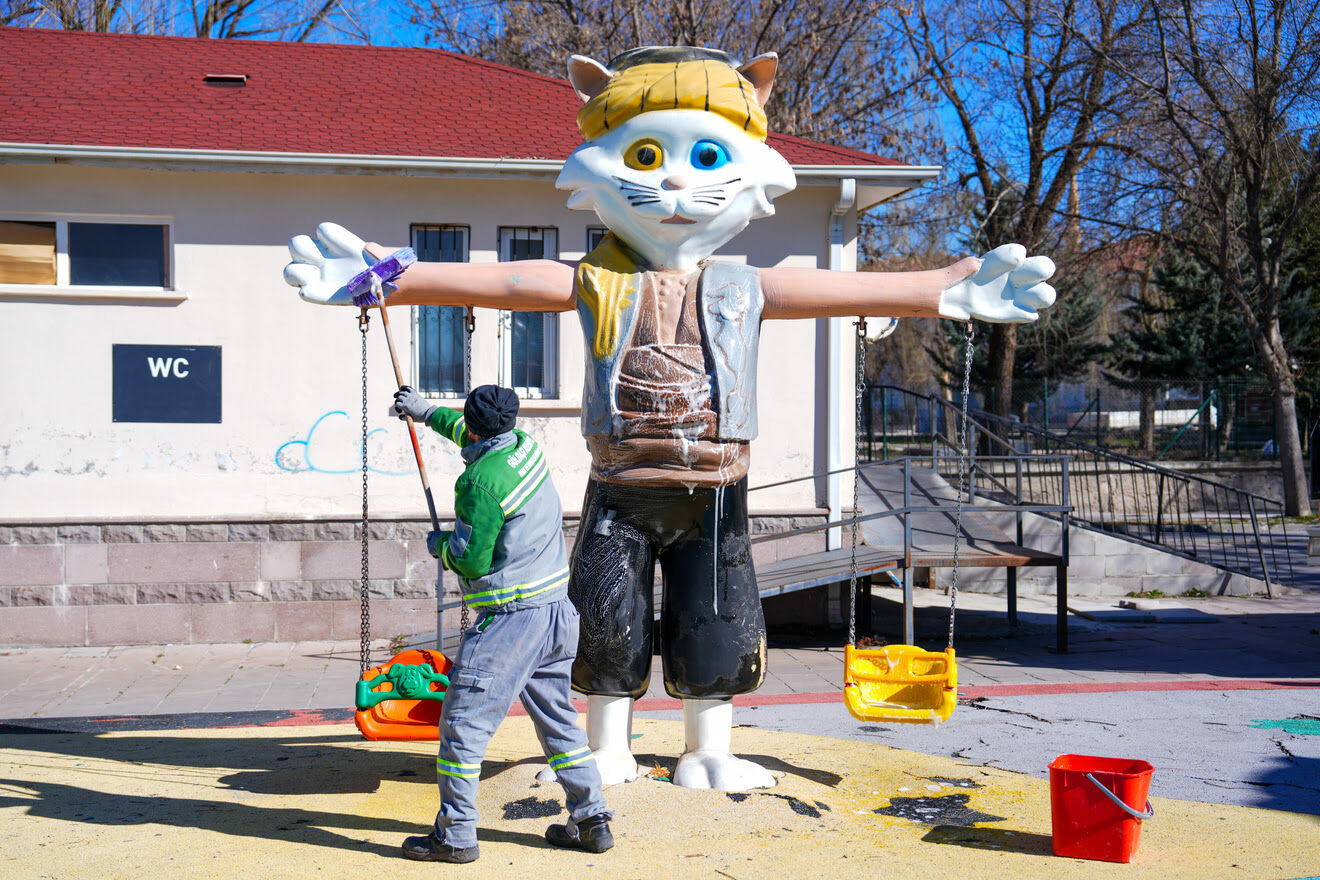 Odabaşı, “Havaların ısınmasıyla birlikte parklarımız vatandaşlarımızın en çok vakit geçirdiği alanlar haline geliyor. Özellikle çocuklarımızın güvenli ve sağlıklı ortamlarda oyun oynayabilmesi bizim için büyük önem taşıyor. Bu nedenle ekiplerimiz parklarımızda kapsamlı bir temizlik ve bakım çalışması başlattı. Oyun gruplarını tazyikli suyla yıkayarak hijyenik hale getiriyoruz, yürüyüş yollarını ve ortak kullanım alanlarını da detaylı şekilde temizliyoruz. Temizlik çalışmalarının yanı sıra ihtiyaç duyulan parklarda oyun gruplarını yeniliyor, bakım ve onarım çalışmalarını da gerçekleştiriyoruz. Amacımız Gölbaşı’nda yaşayan her vatandaşımızın daha temiz, daha güvenli ve daha yaşanabilir bir çevrede hayatını sürdürmesini sağlamak. Bu kapsamda ilçemizin dört bir yanındaki park ve yeşil alanlarda çalışmalarımız planlı şekilde devam edecek.” dedi.