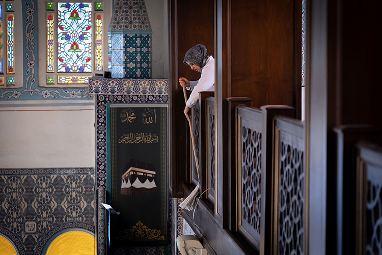 Camilerde halıları, camları ve duvarları silen ve genel temizlik yapan gönüllü kadınlar, vatandaşların ramazanda ibadetlerini daha temiz ve ferah bir ortamda gerçekleştirmesi için çalışıyor.