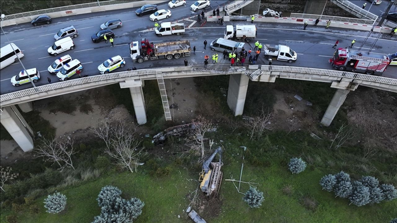 Kaza nedeniyle bölgede trafik kontrollü olarak sağlanırken, hafif ticari araç bariyerden kaldırıldı, tır ve iş makinesinin kaldırılmasına yönelik çalışmalar sürüyor.