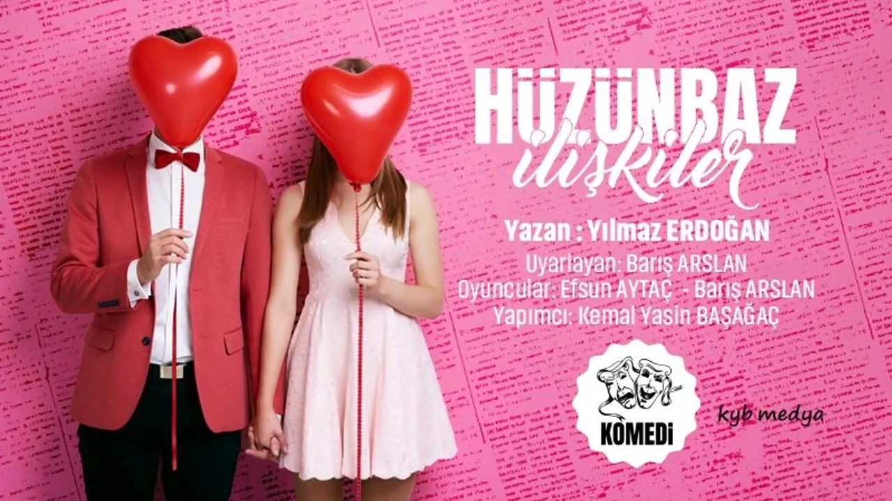 Yılmaz Erdoğan'ın yazıp Efsun Aytaç ve Barış Arslan tarafından sahnelenen Hüzünbaz İlişkiler adlı tiyatro oyunu seyirci ile buluşacak. Bu akşam Antares Sanat Merkezi'nde sahnelenecek olan Hüzünbaz İlişkiler adlı tiyatro oyununun başlama saati 20:00.