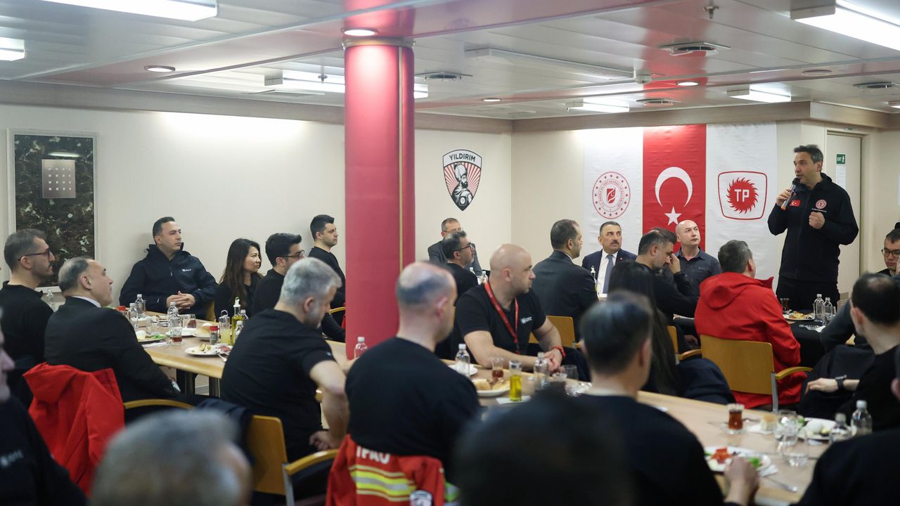 Bakan Bayraktar, Zonguldak’taki temaslarına gece saatlerinde Filyos’ta devam etti. Filyos Limanı’nda demirleyen Yıldırım derin deniz sondaj gemisine çıkan Bakan Bayraktar, gemi personeliyle sahur yaptı.