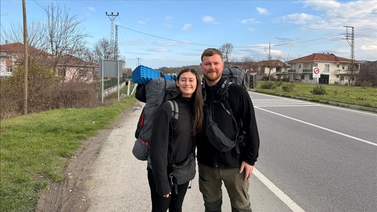 İngiltere'den yaklaşık 1,5 yıl önce yola çıkan Sophie Tang (27) ve Luke Deakin (32) yürüyerek Samsun'un Alaçam ilçesine geldi.