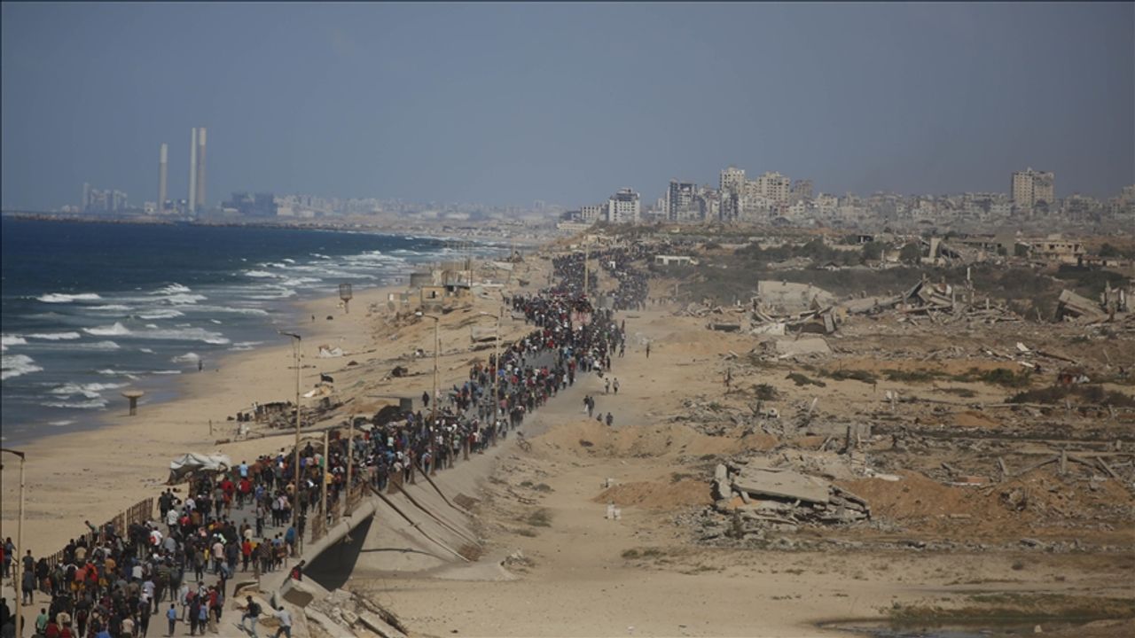 İsrail saldırıları nedeniyle yerinden edilen binlerce Filistinli, Gazze Şeridi’nin orta kesimi ve güney bölgelerindeki sığındıkları merkezlerden eşyalarını toplayarak, Gazze kenti ile kuzey vilayetlerindeki evlerine doğru yola çıktı.