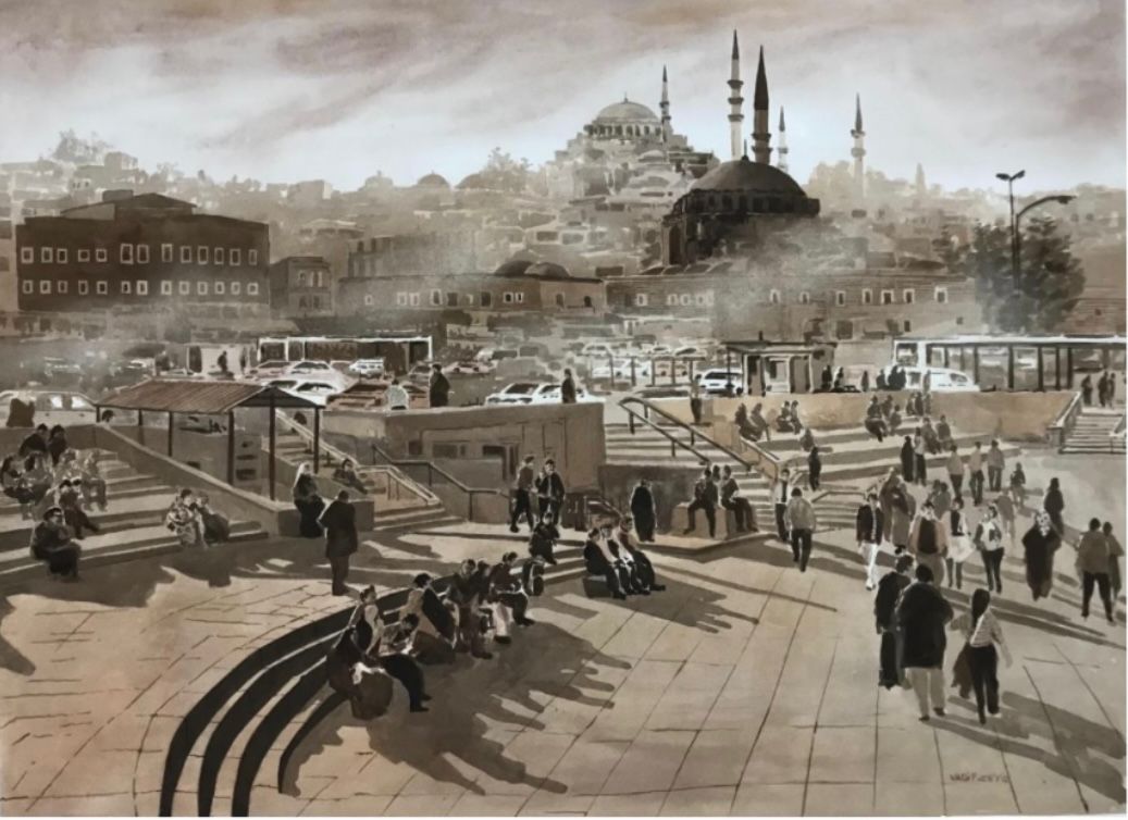 İstanbul’da kişisel sergisinde de İstanbul’u anlattığını söyleyen Vagif Zeyitguliyev, “İstanbul’u severek geldim Türkiye’ye aslında. Ayasofya sevgim çok yüksek” diyor.